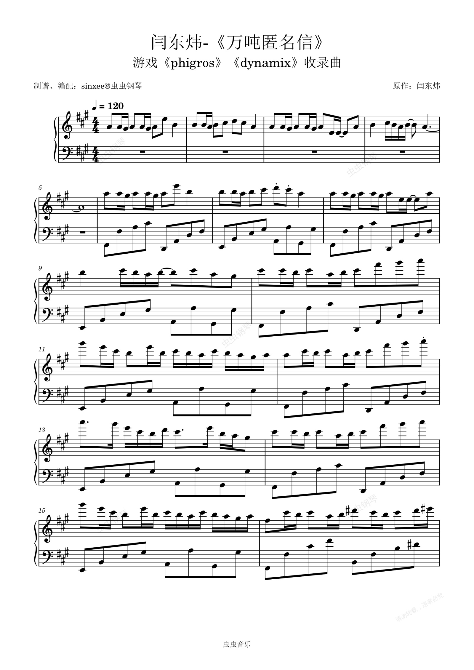钢琴谱:闫东炜-《万吨匿名信》(游戏《phigros》《dynamix》收录曲)