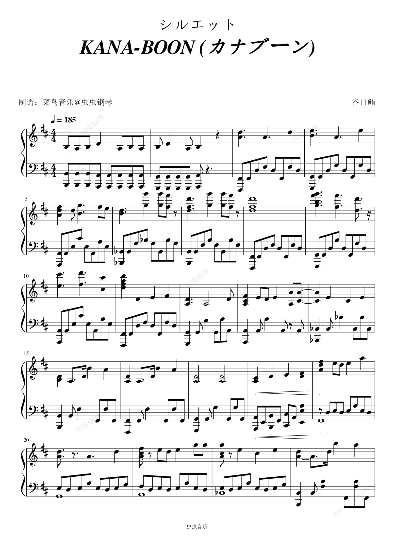 钢琴谱:シルエット - KANA-BOON (カナブーン) - Naruto Shippuden - Silhouette