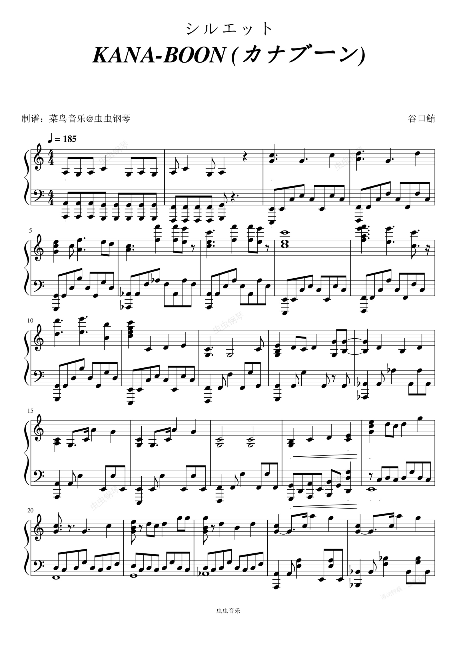 钢琴谱:シルエット - KANA-BOON (カナブーン) - Naruto Shippuden - Silhouette