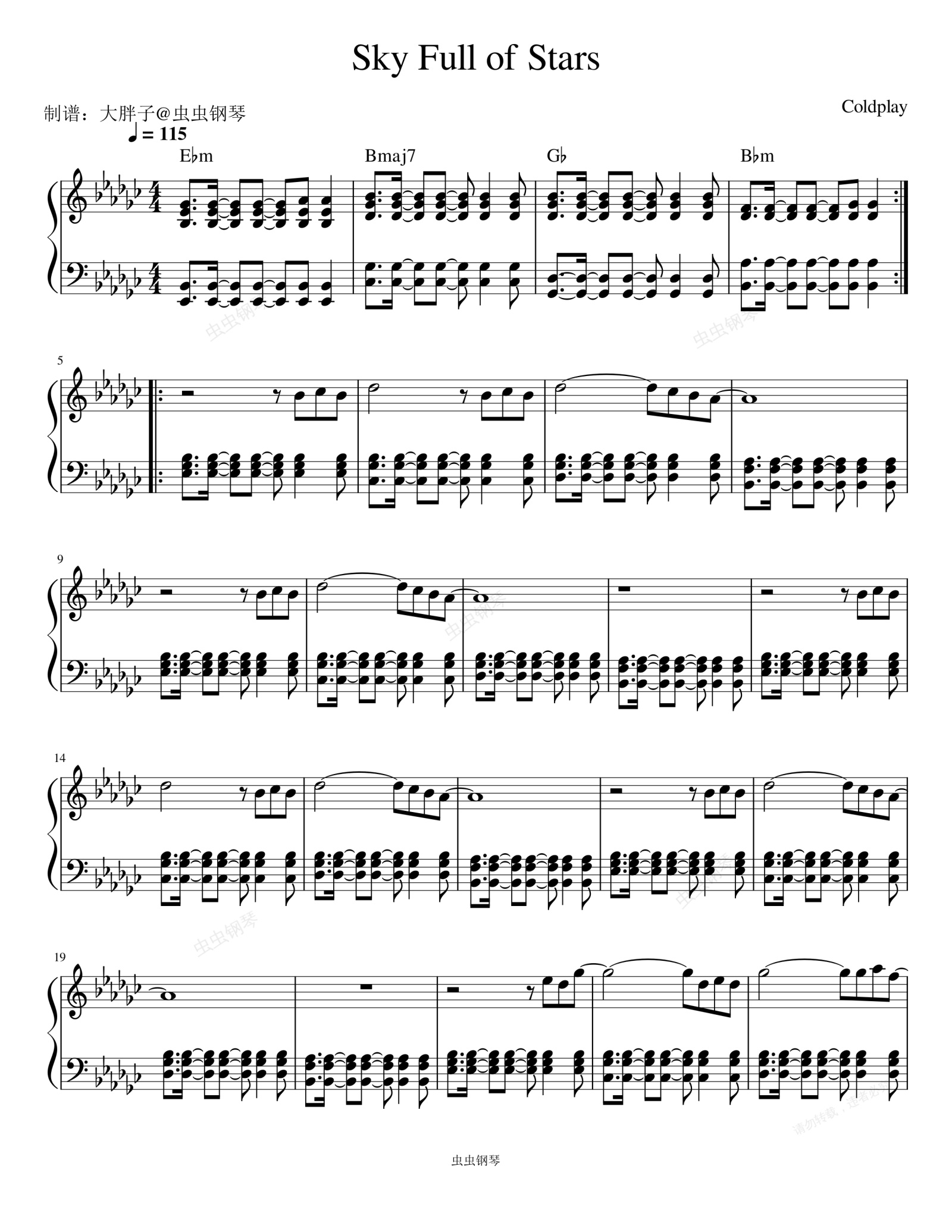钢琴谱:A Sky Full Of Stars - Coldplay (酷玩乐队)