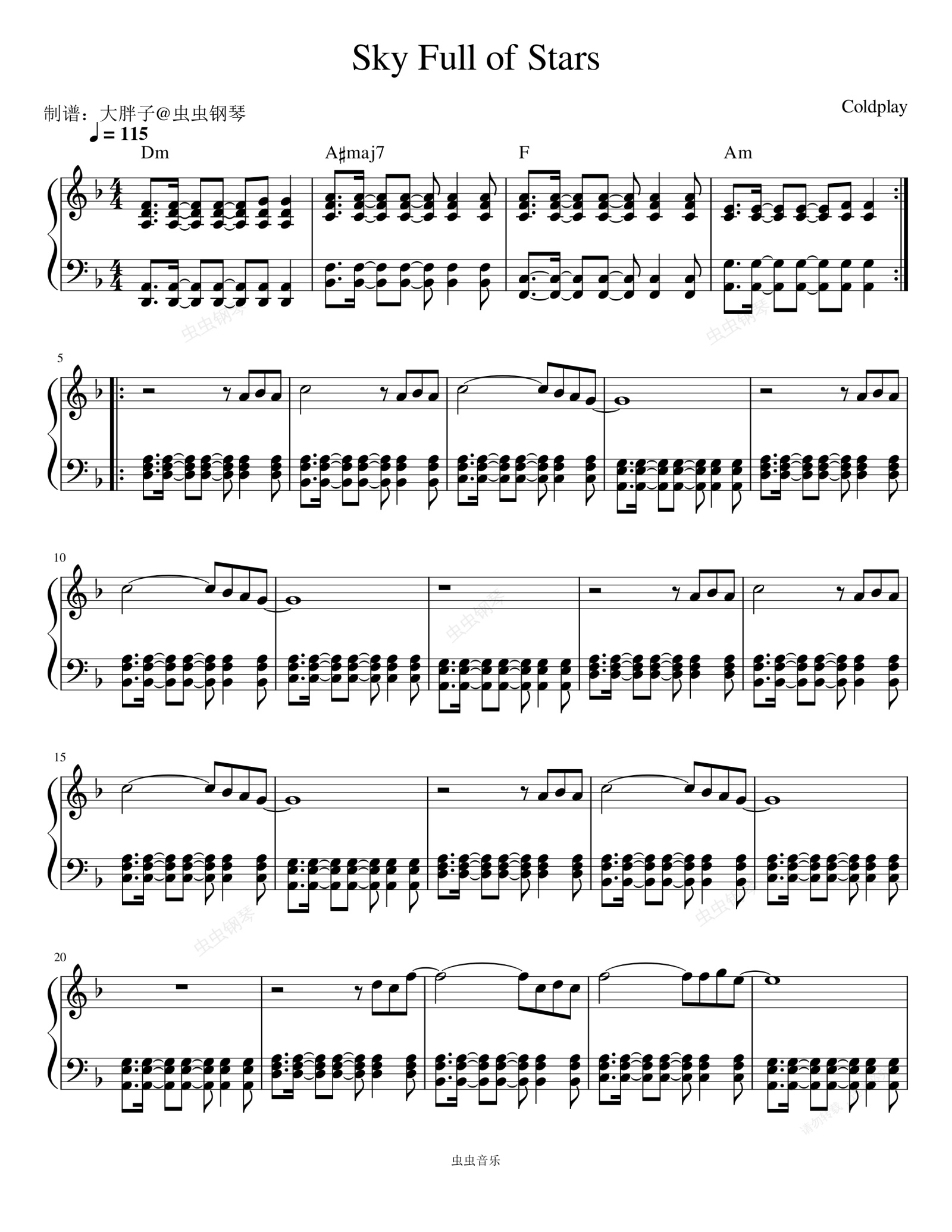 钢琴谱:A Sky Full Of Stars - Coldplay (酷玩乐队)