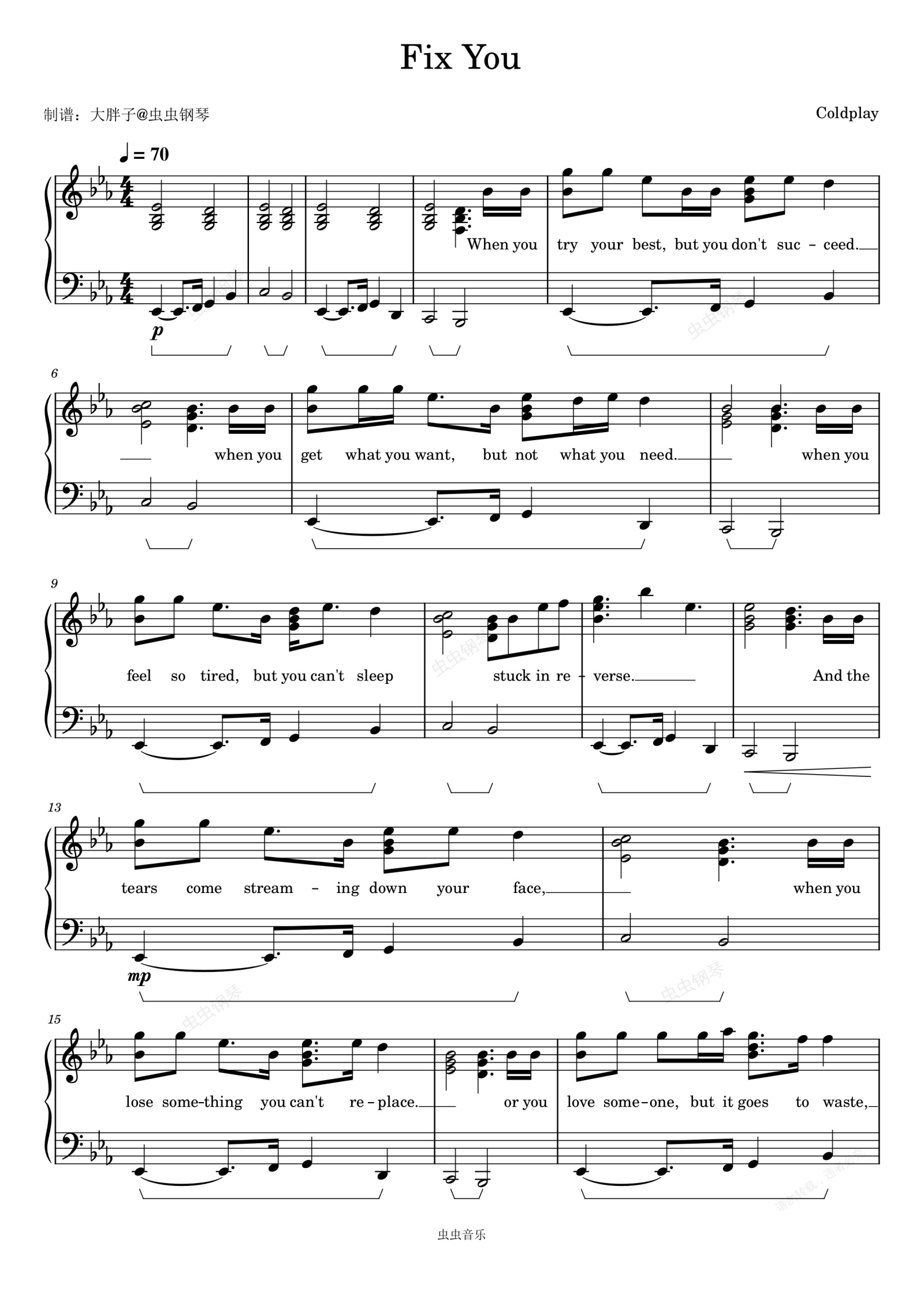 钢琴谱:Fix You - Coldplay (酷玩乐队)