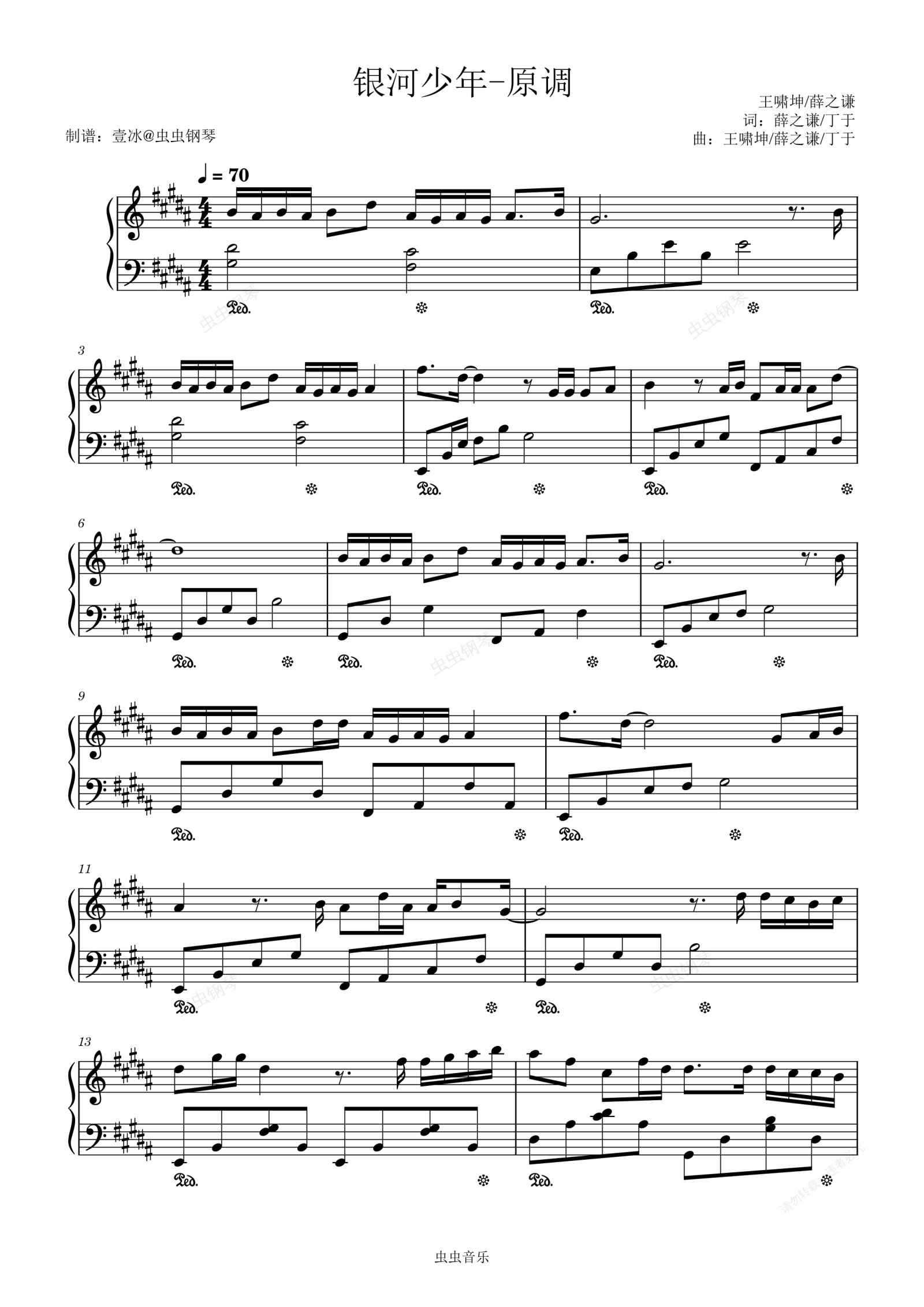 钢琴谱:银河少年//王啸坤/薛之谦-原调
