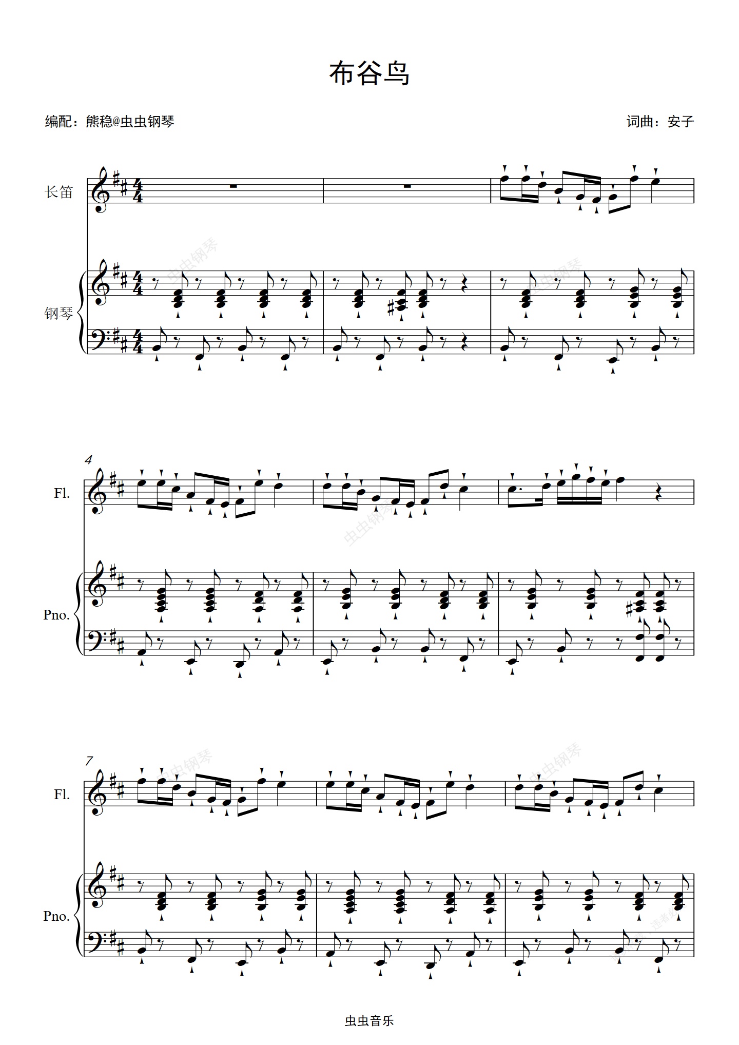 钢琴谱:《布谷鸟》D调钢琴伴奏谱。