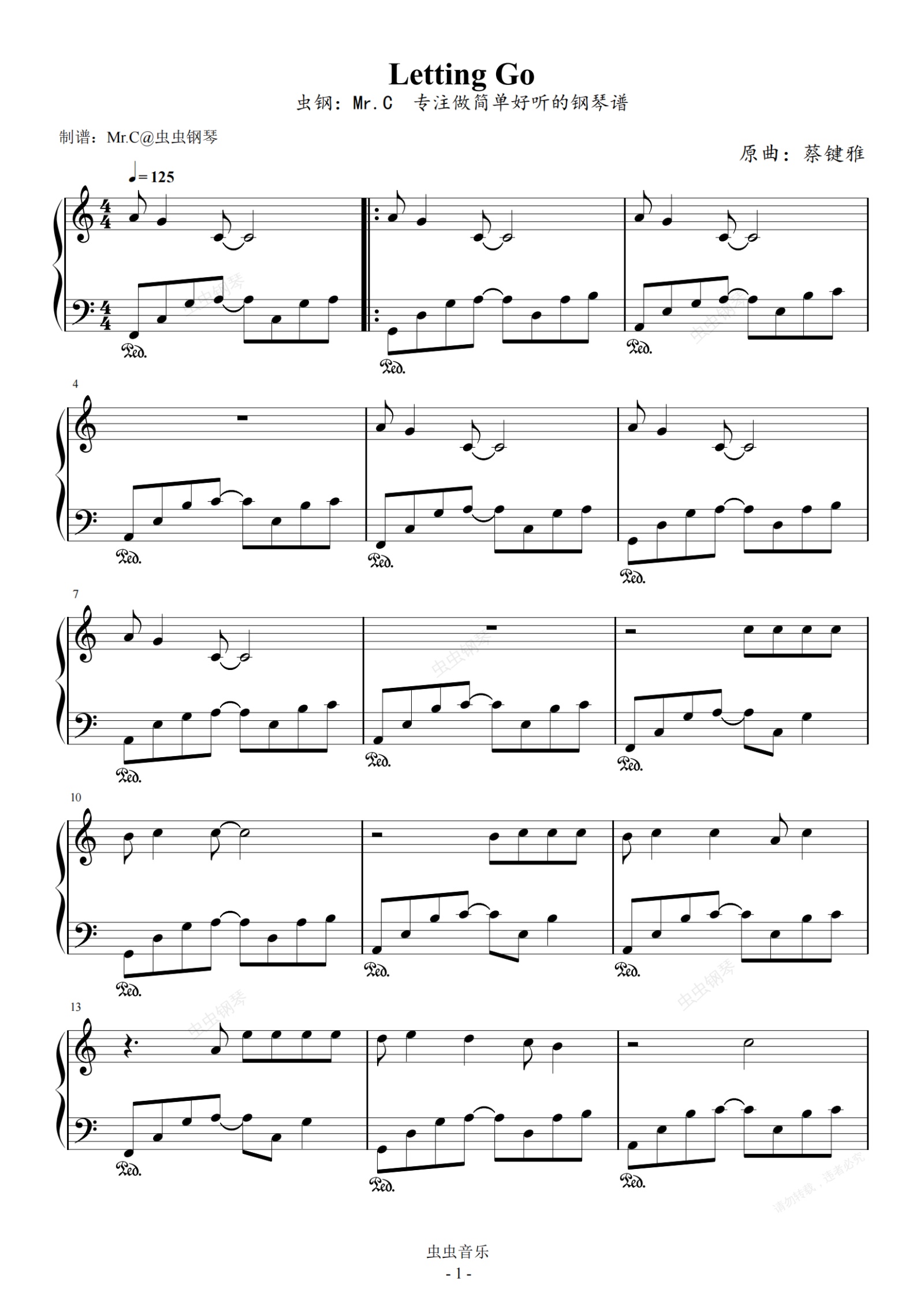 钢琴谱:Letting Go-蔡健雅 简单好听版
