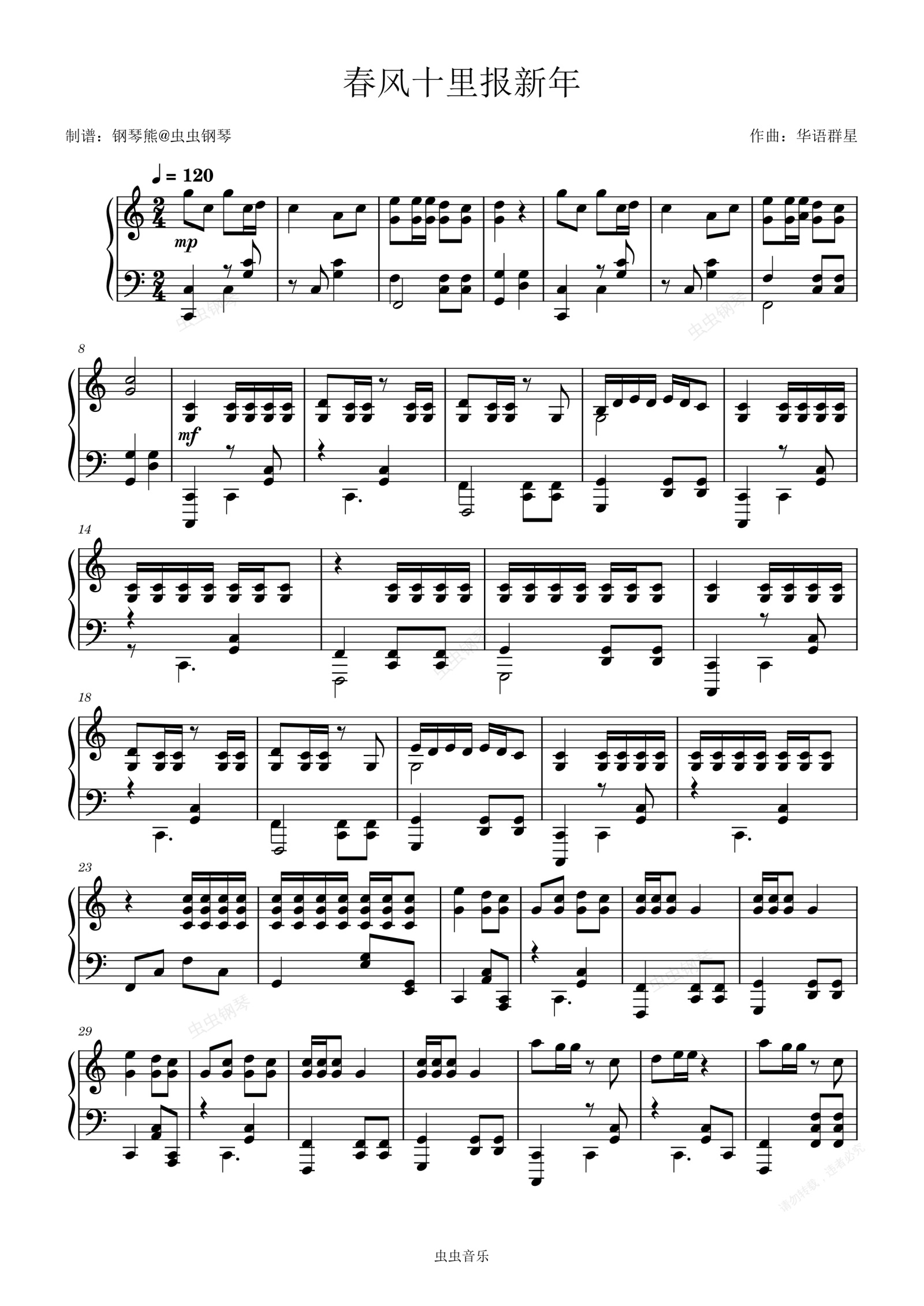 钢琴谱:C调《春风十里报新年》 喜欢的兄弟记得点♥♥♥👇👇👇