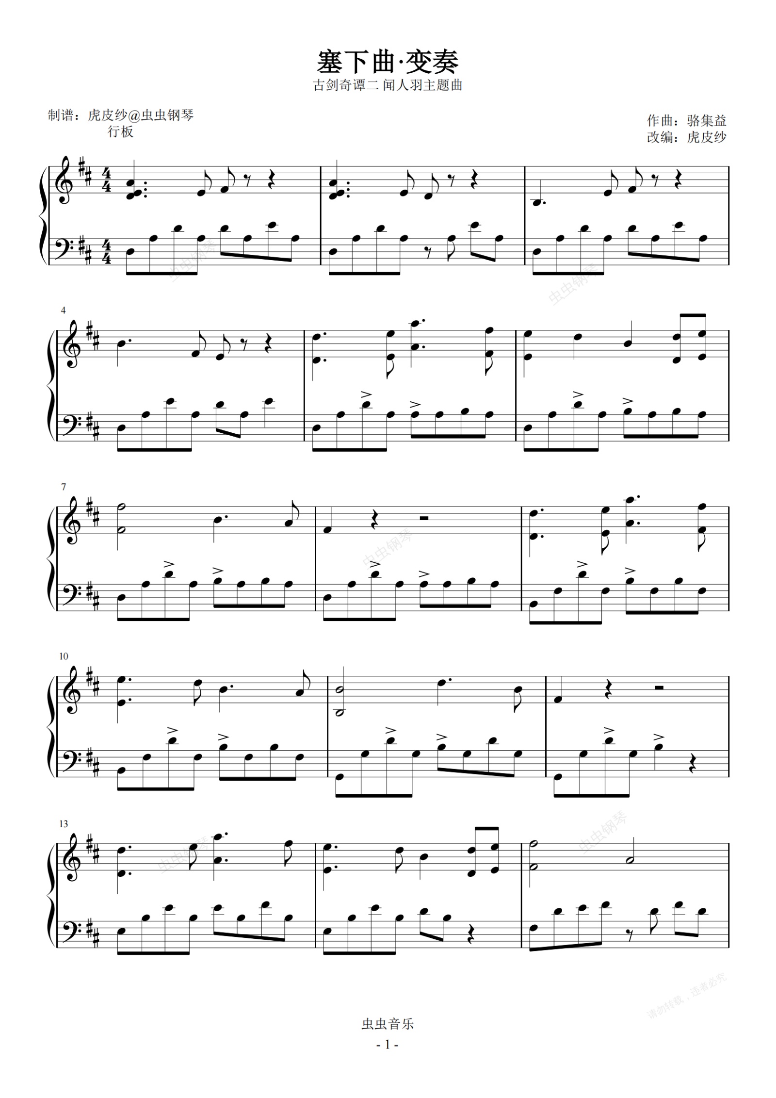 钢琴谱:古剑奇谭二 塞下曲变奏 闻人羽主题曲