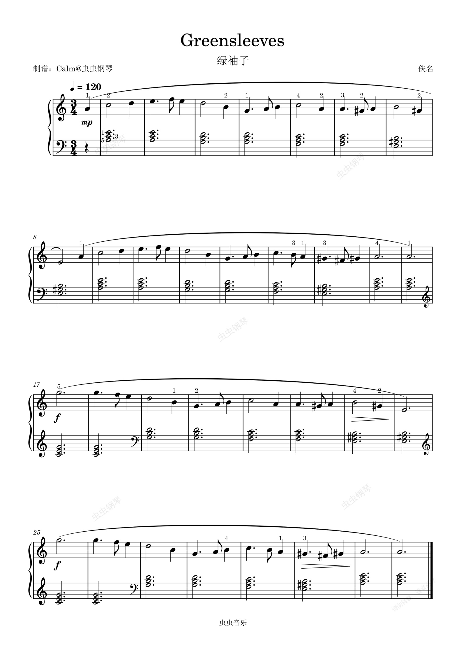 钢琴谱:V叔钢琴课-M5A3-绿袖子