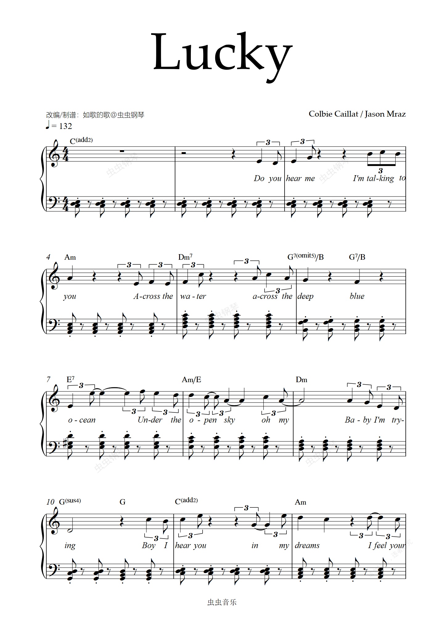 钢琴谱:Lucky-Colbie Caillat/Jason Mraz可弹唱