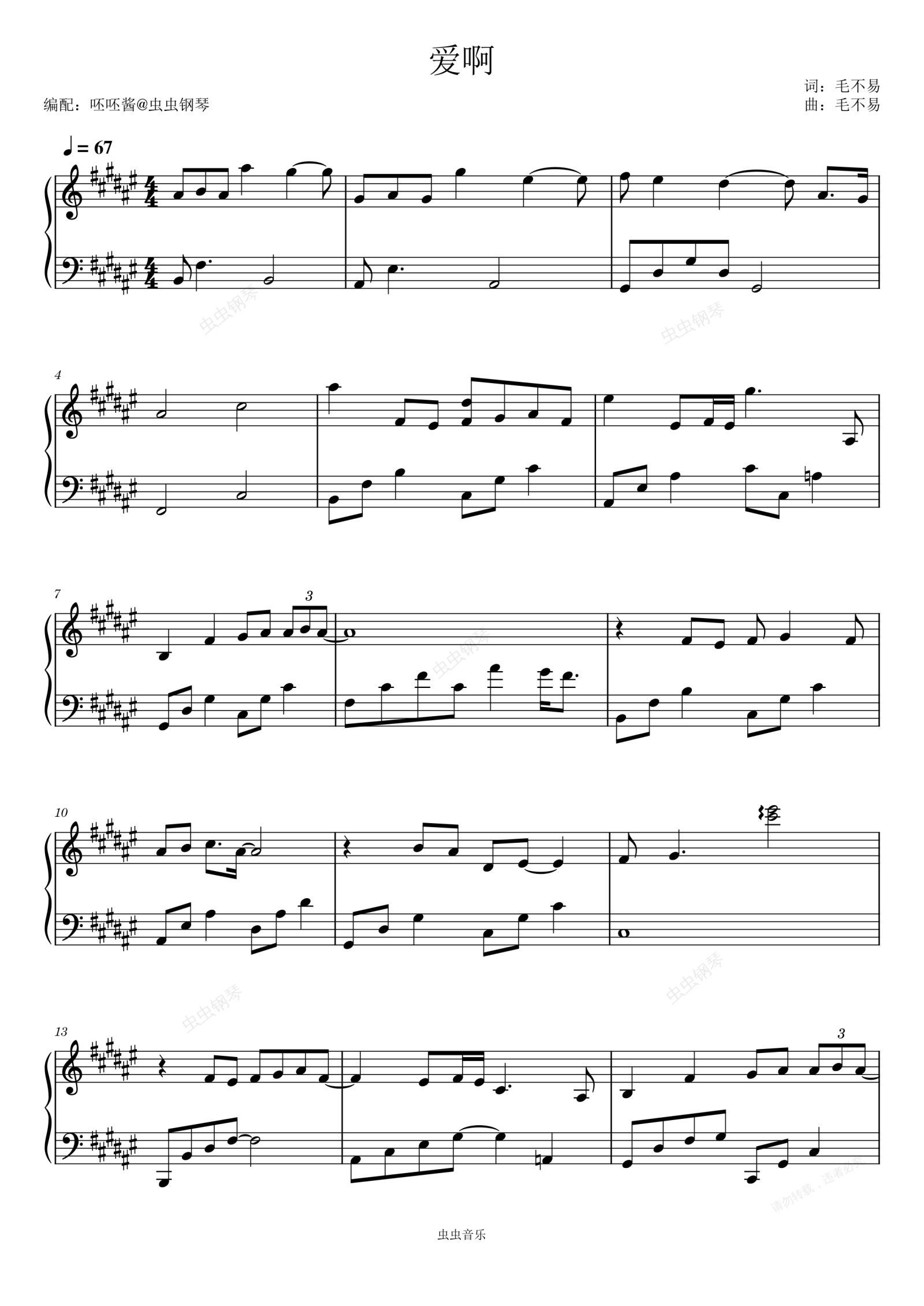 钢琴谱:爱啊【独奏改编版】-F#调-毛不易