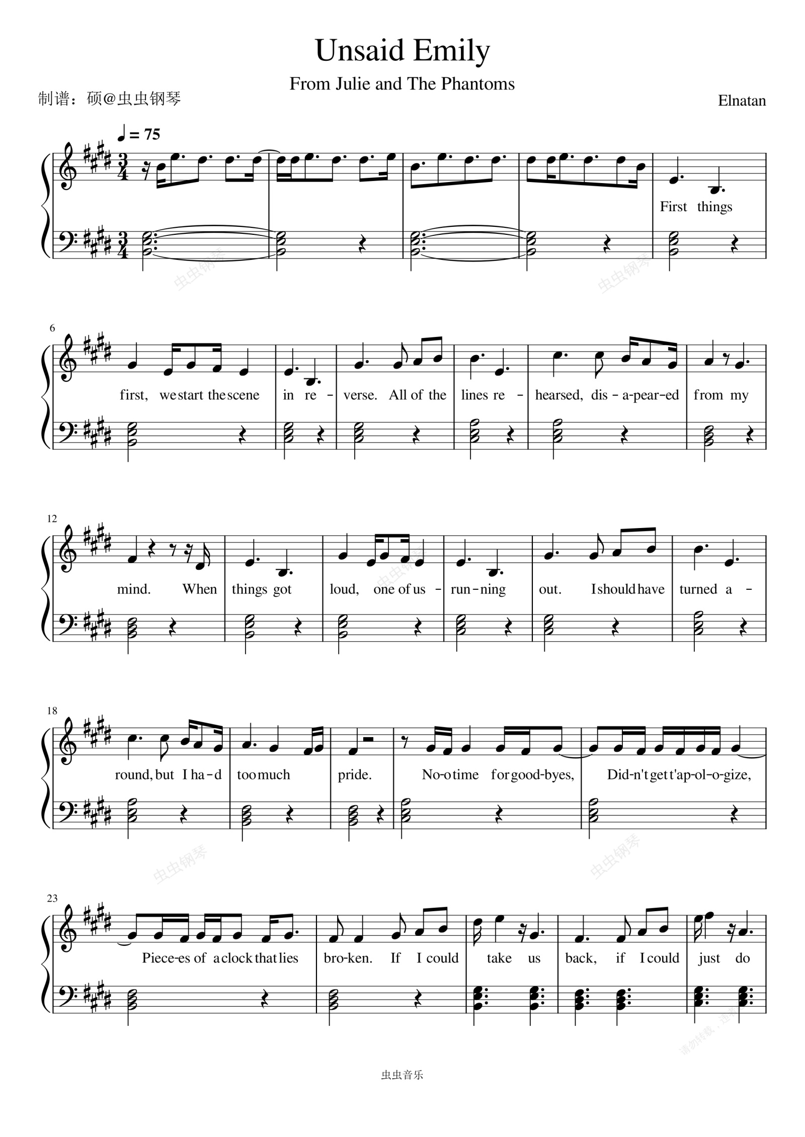 钢琴谱:Unsaid Emily (Julie and the Phantoms)
