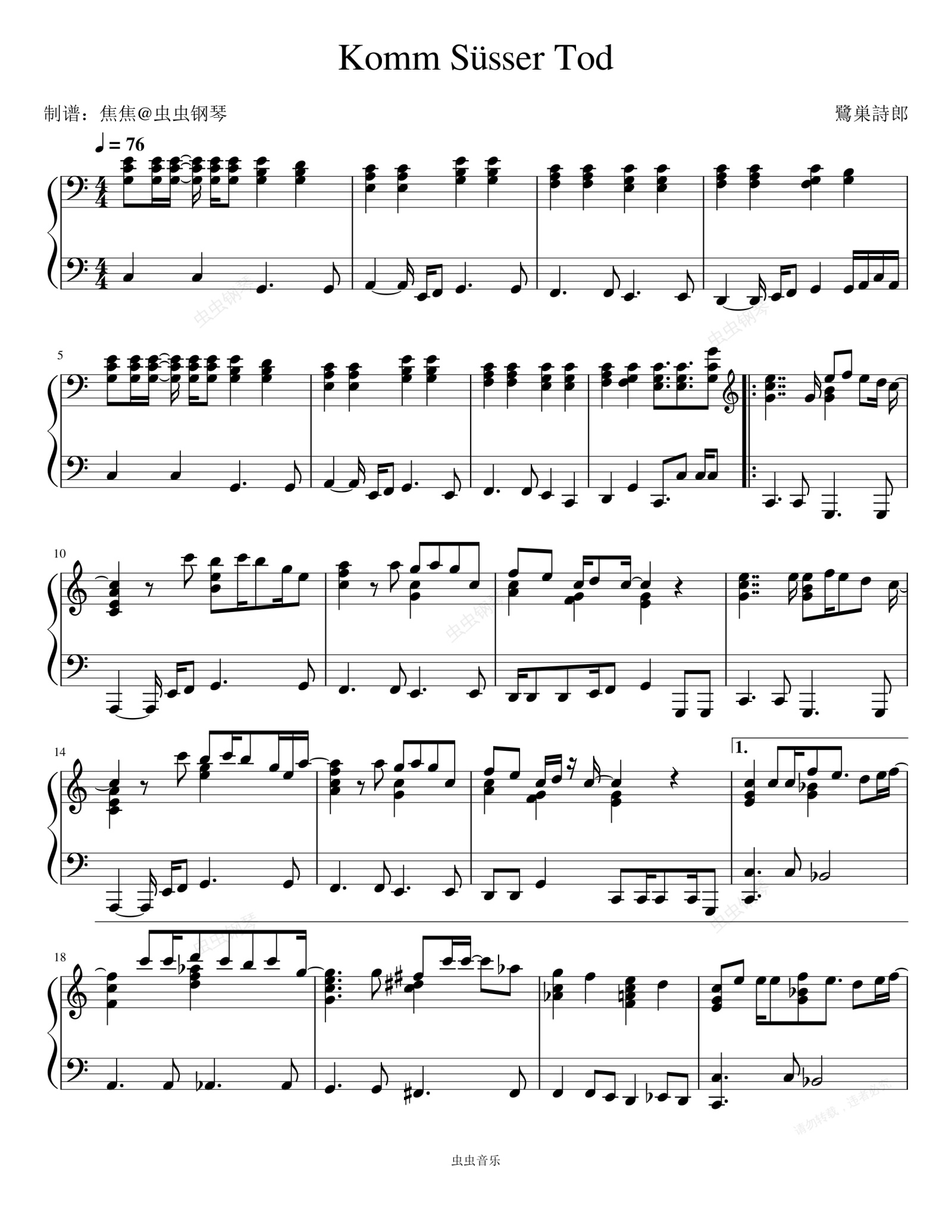 钢琴谱:Komm, süsser Tod (甘き死よ、来たれ) (来吧,甜美的死亡) - ARIANNE