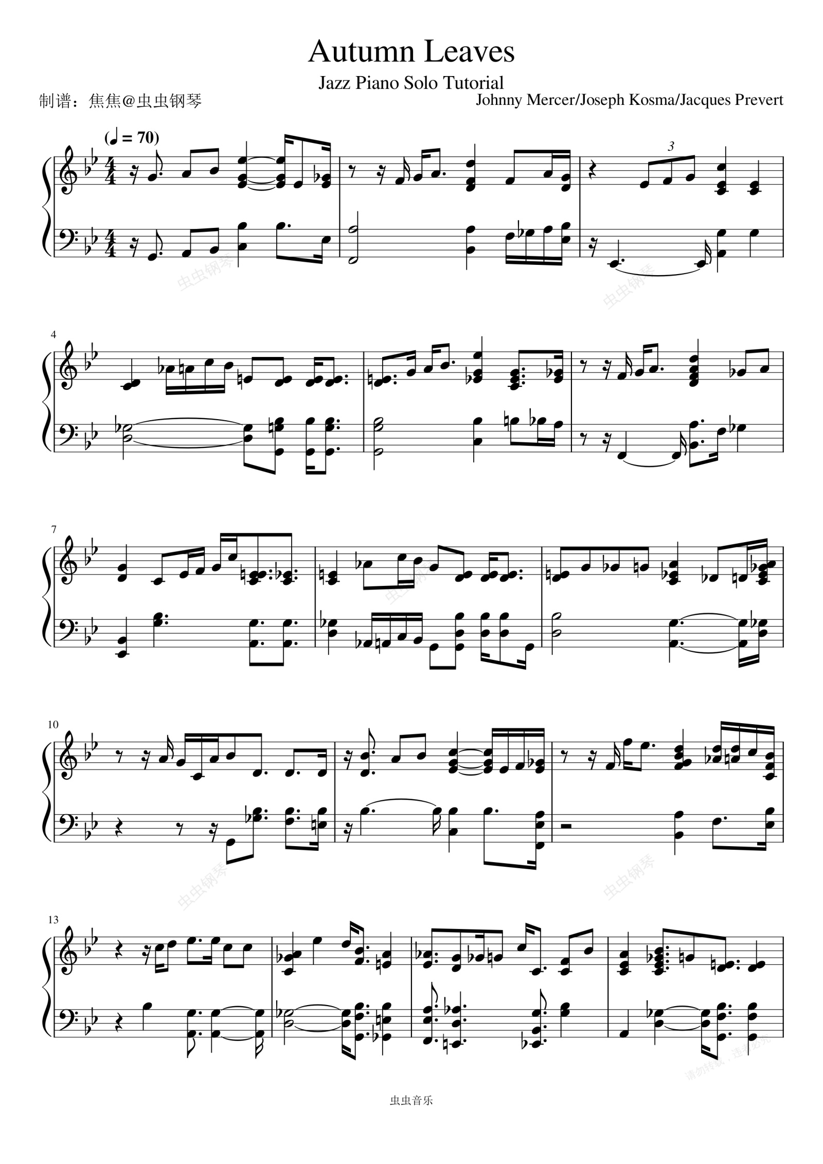 钢琴谱:Autumn Leaves - Eric Clapton (艾力克·克莱普顿)
