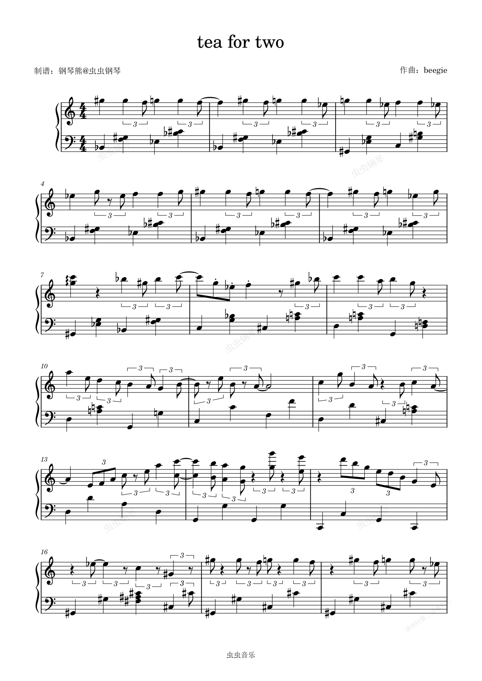 钢琴谱:《tea for two》钢琴爵士乐版~ 浪漫酒味 喜欢的兄弟记得点♥♥♥👇👇👇