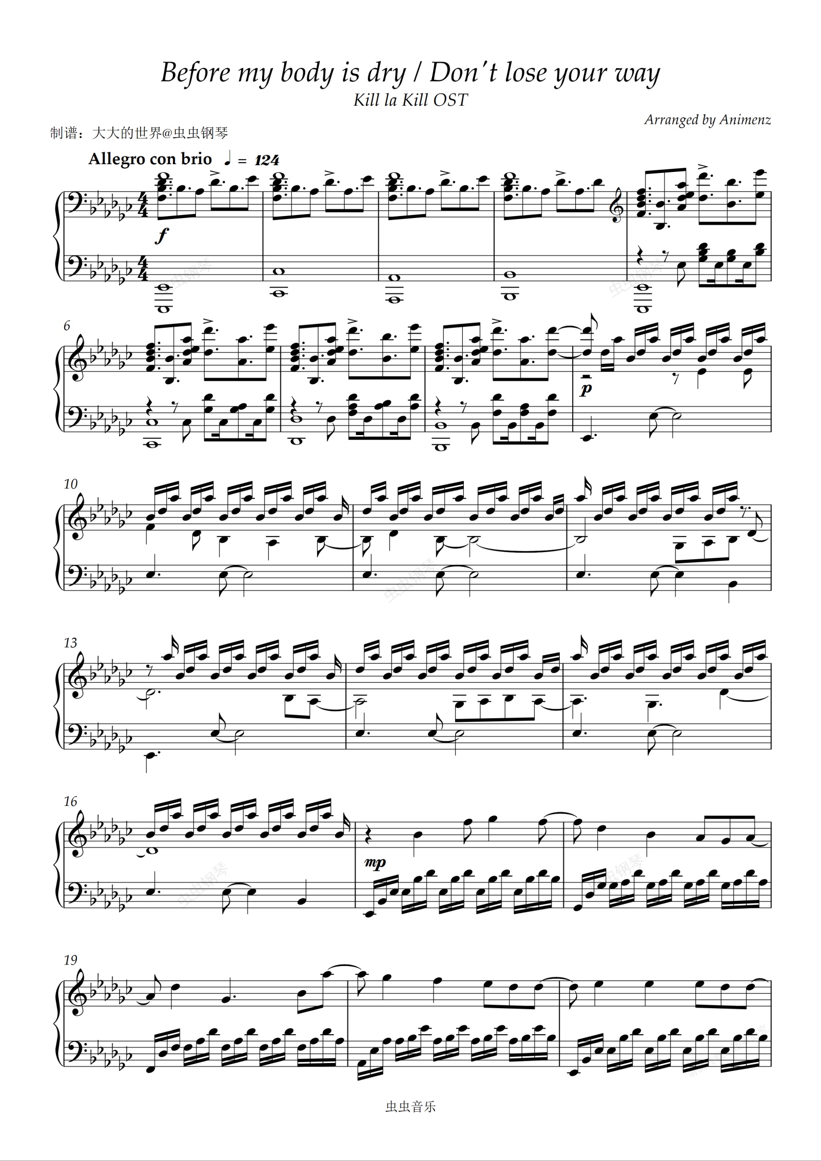 钢琴谱:Before my body is dry(血液未干之前)《斩服少女》TV动画插曲 - 澤野弘之 (さわの ひろゆき)