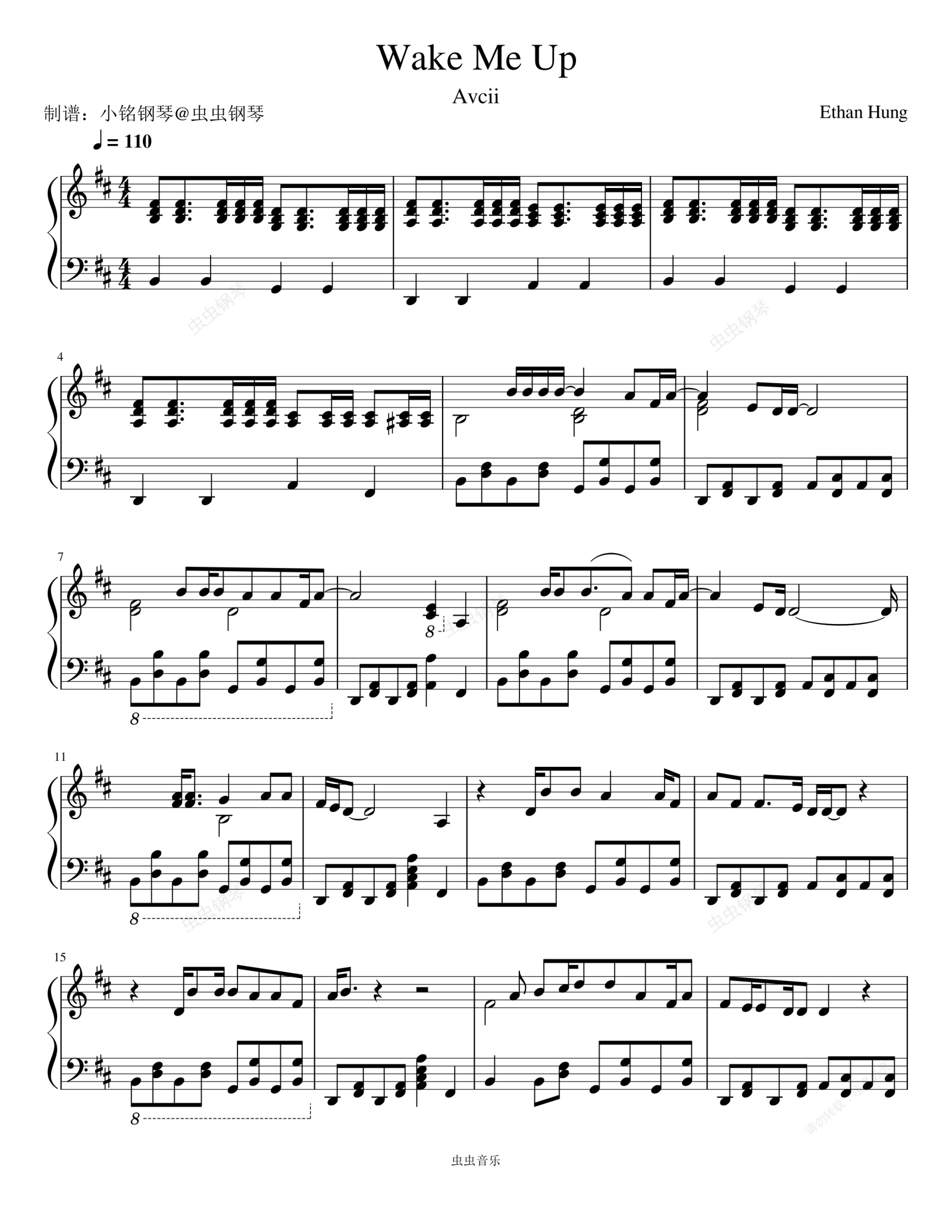 钢琴谱:Wake Me Up - Avicii (艾维奇)
