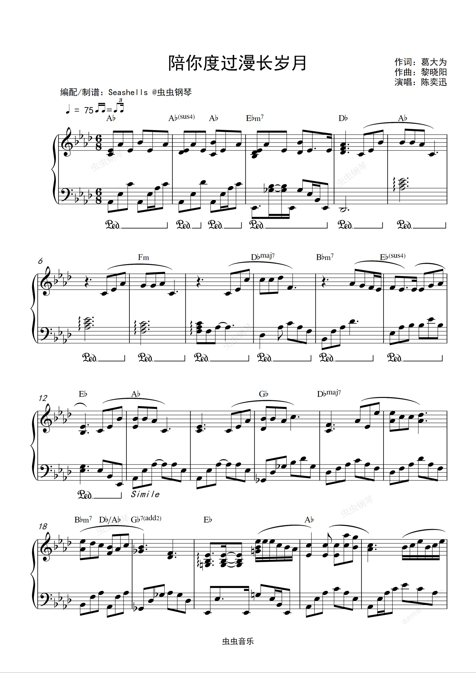 钢琴谱:陈奕迅 - 《陪你度过漫长岁月》精编钢琴独奏