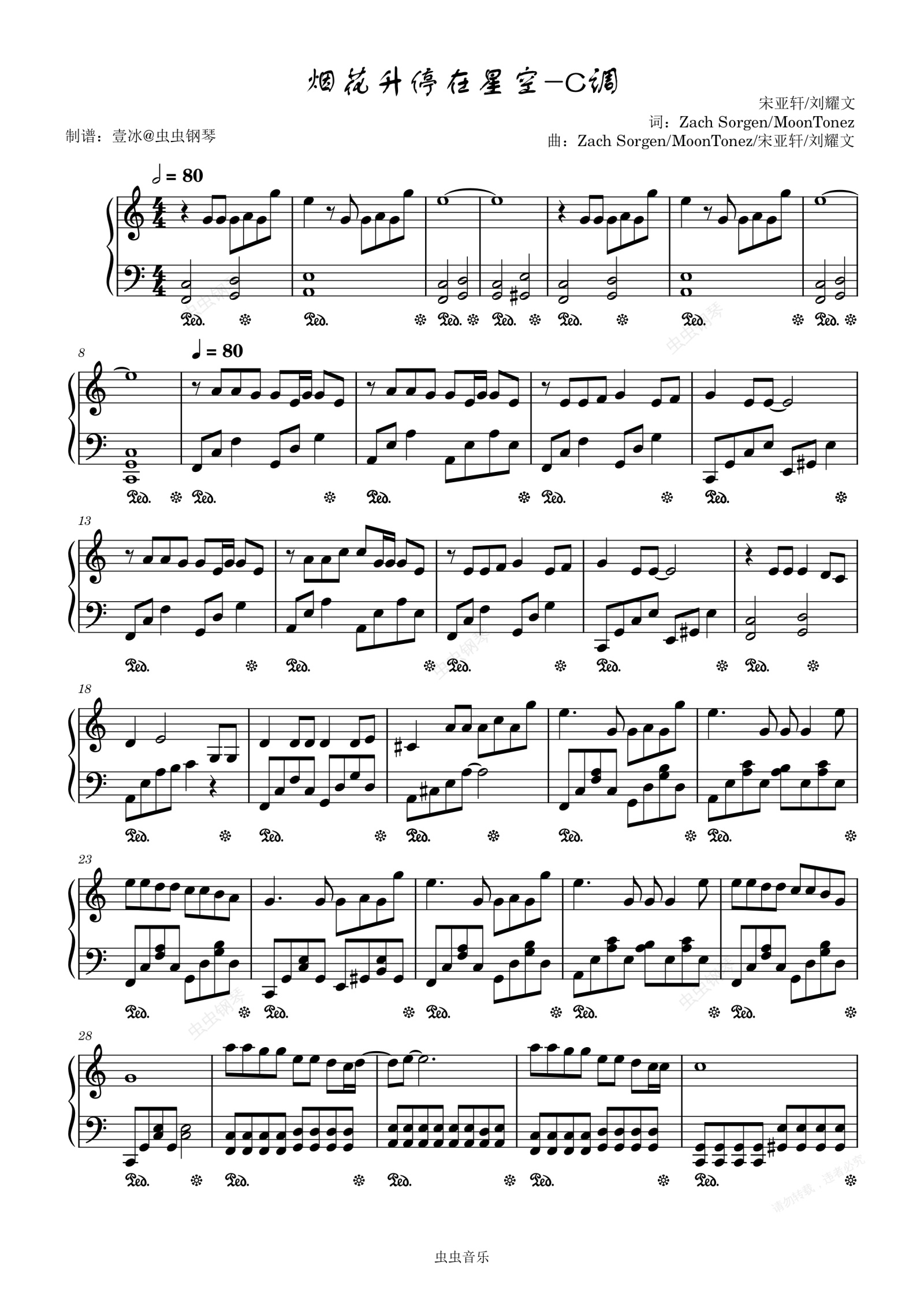 钢琴谱:烟花升停在星夜//宋亚轩/刘耀文-C调
