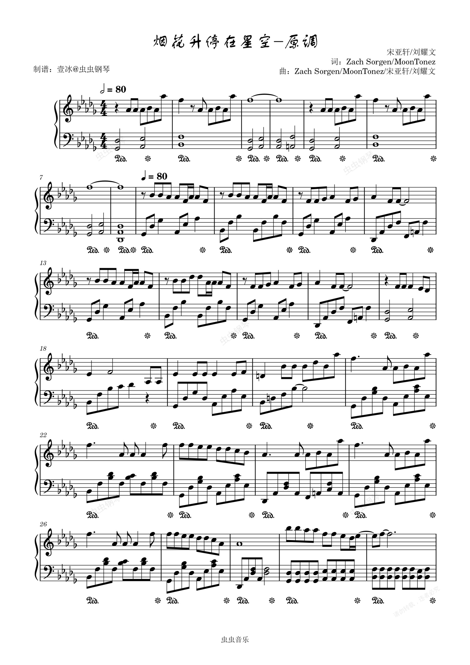 钢琴谱:烟花升停在星夜//宋亚轩/刘耀文-原调