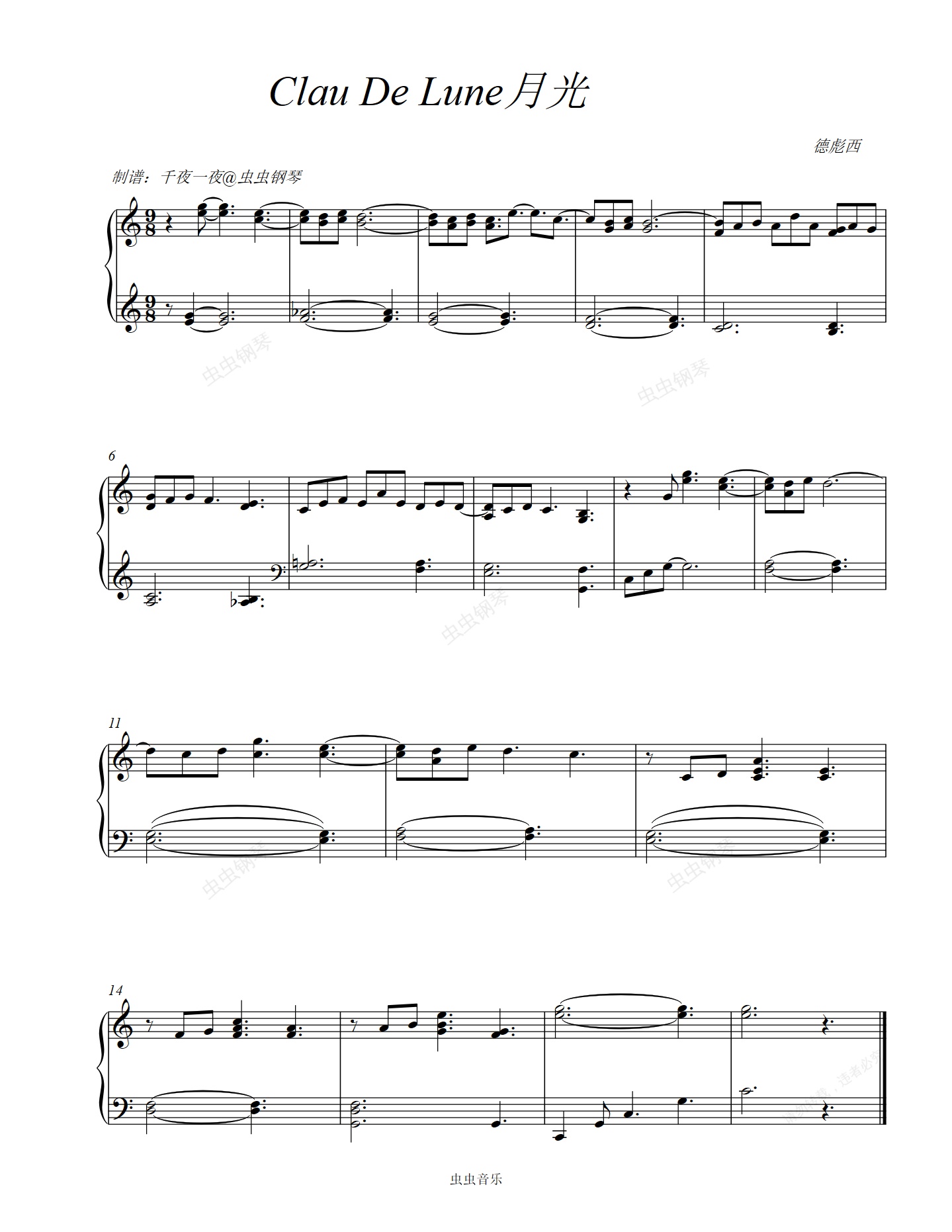 钢琴谱:【钢琴】月光 德彪西 Clair de Lune - by Rousseau 简单版