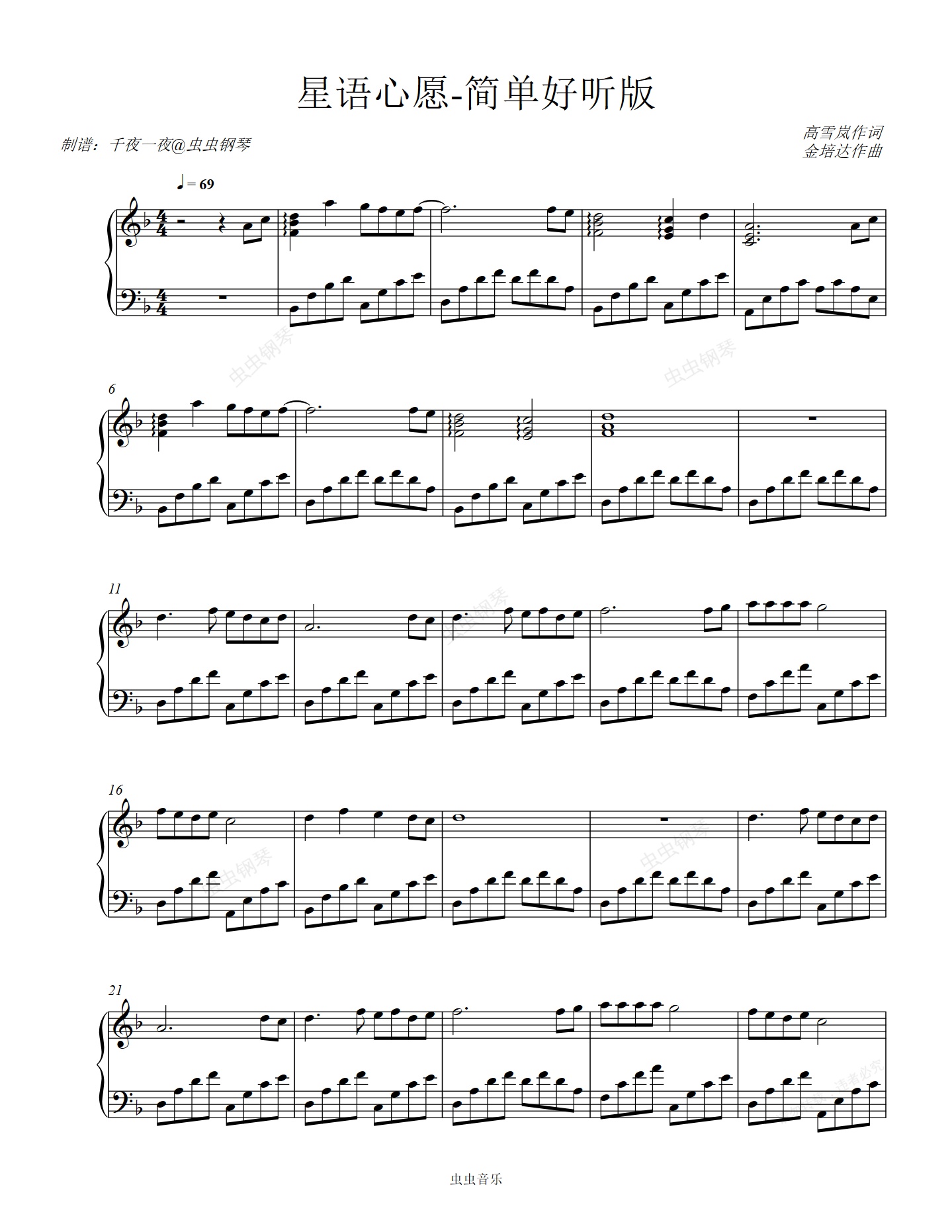 钢琴谱:【钢琴曲】星语心愿 — 张柏芝