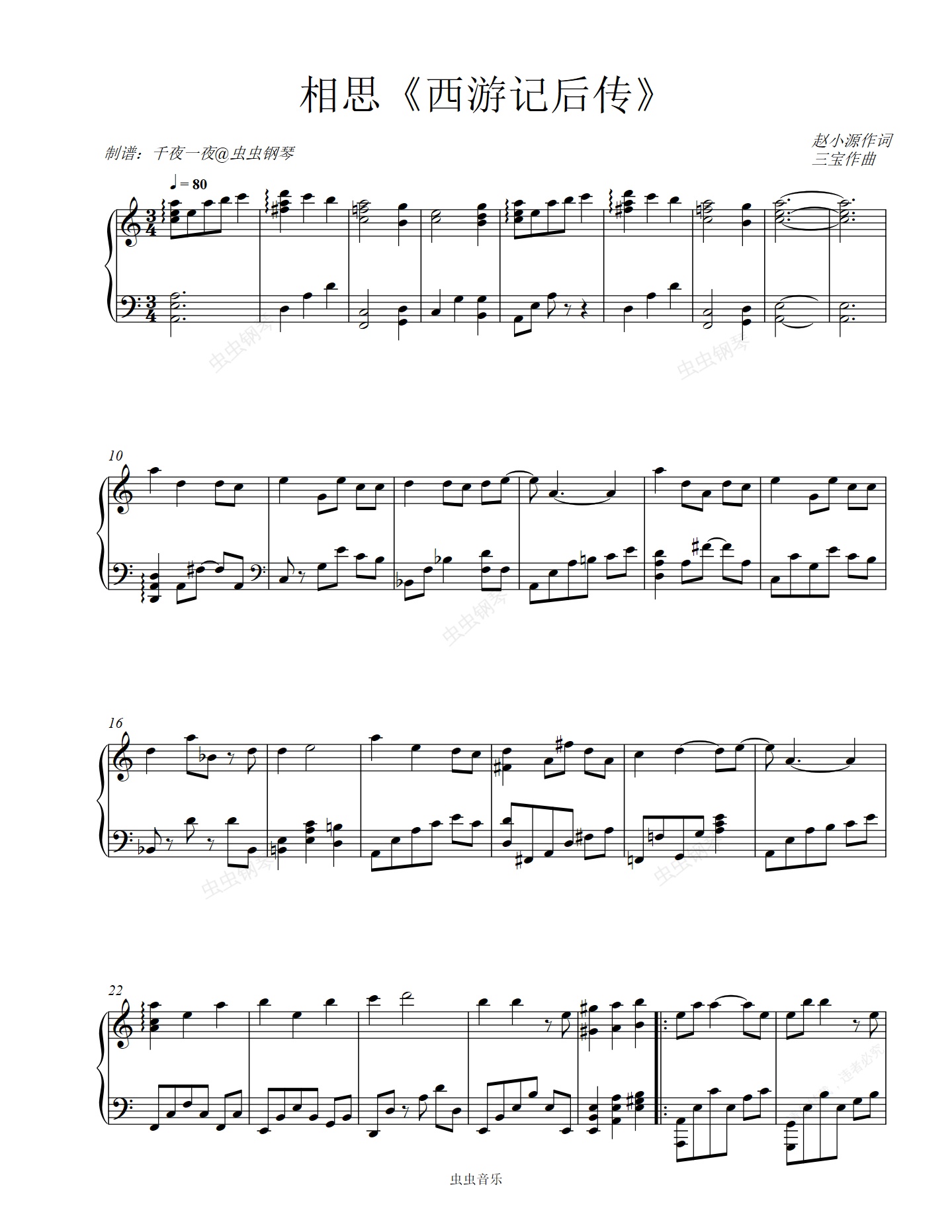 钢琴谱:《西游记后传》片尾曲 《相思》钢琴版