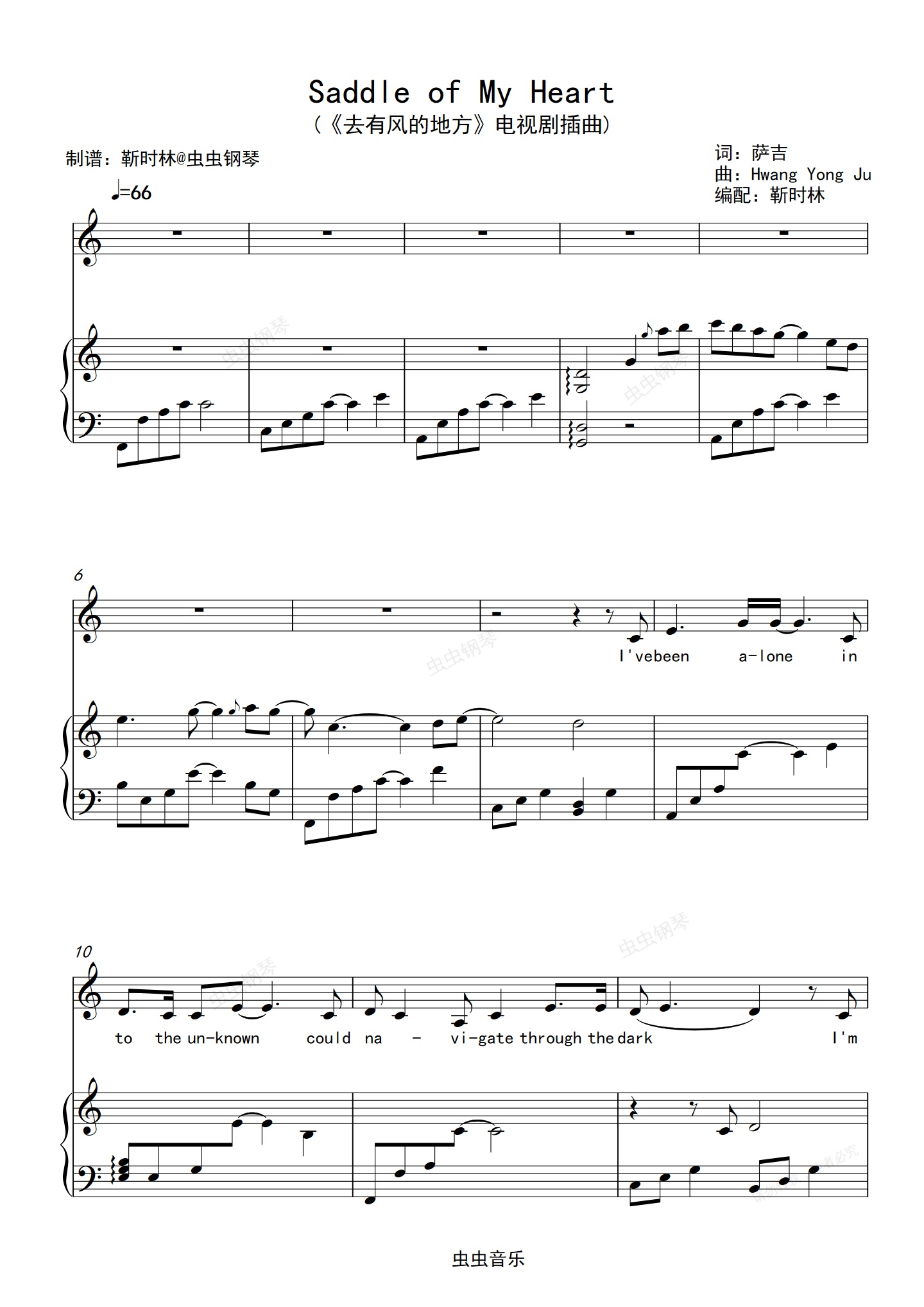 钢琴谱:《去有风的地方》主题曲(Saddle of My Heart)带歌词 C调 高度还原