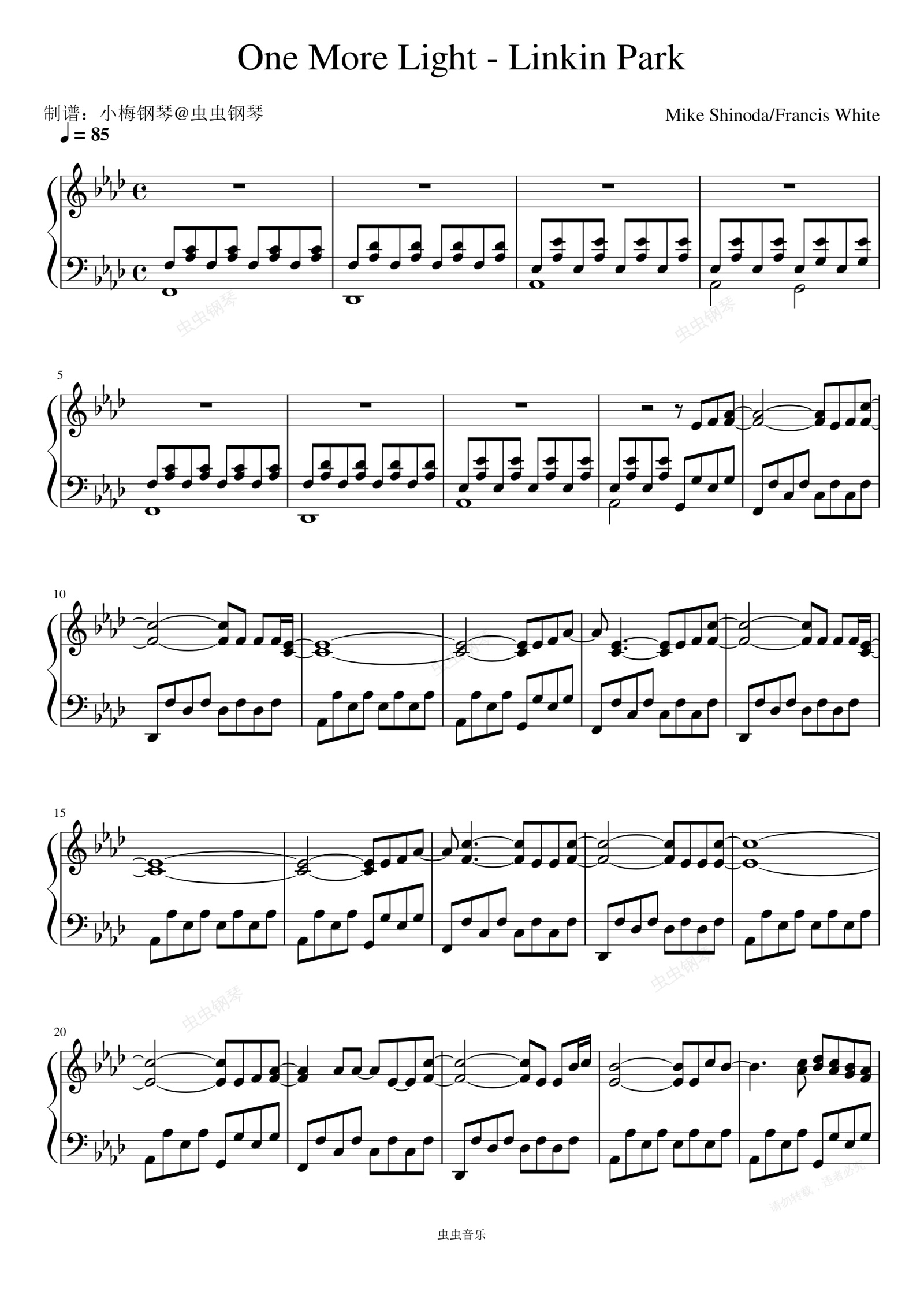 钢琴谱:One More Light - Linkin Park (林肯公园)