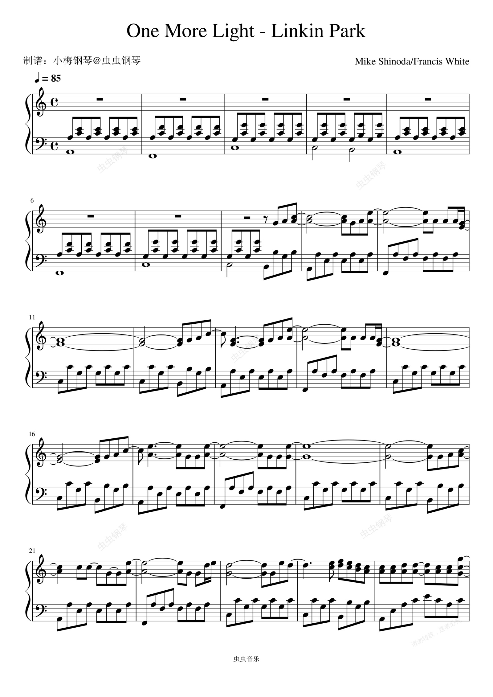 钢琴谱:One More Light - Linkin Park (林肯公园)
