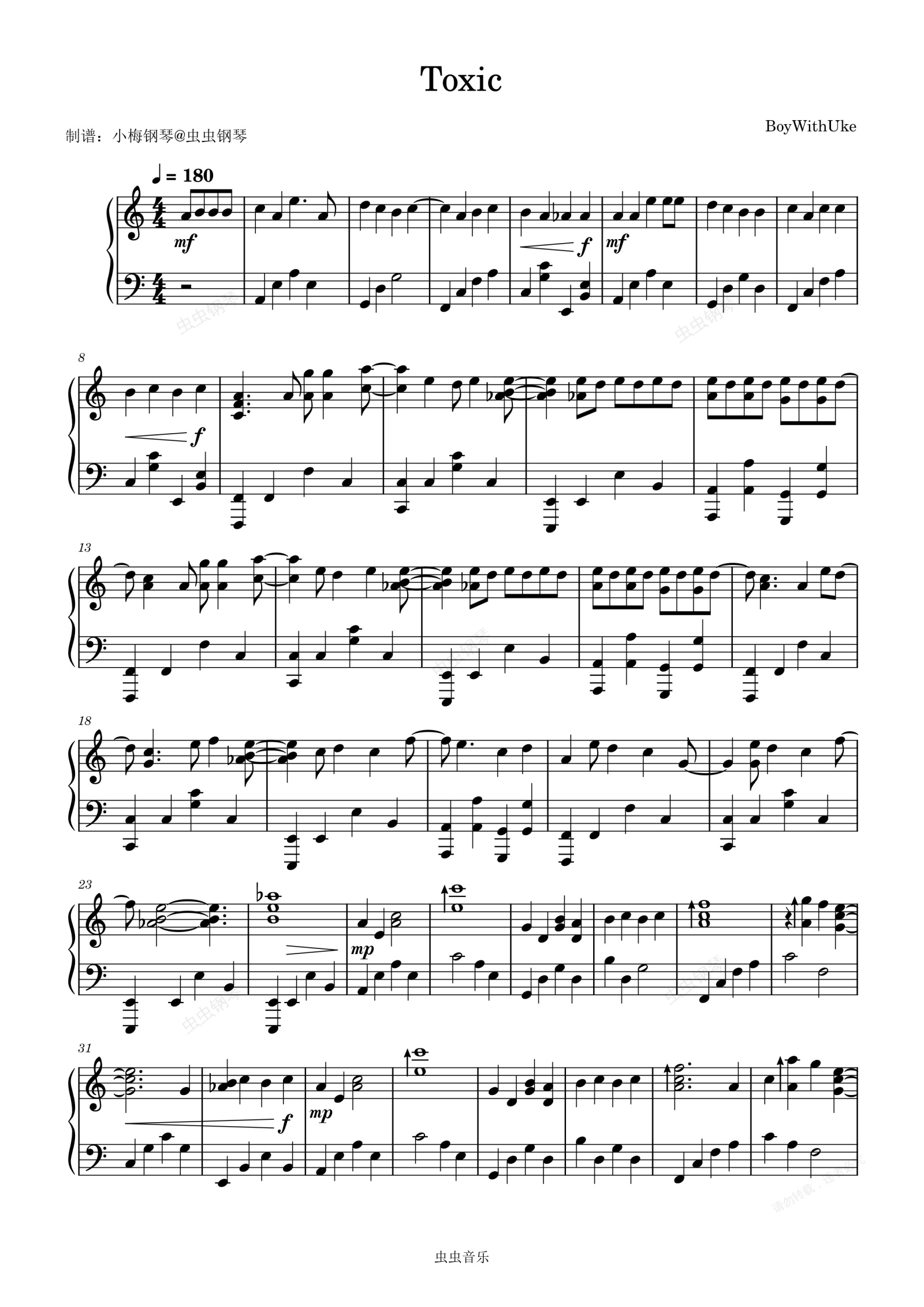钢琴谱:Toxic (Explicit) - BoyWithUke