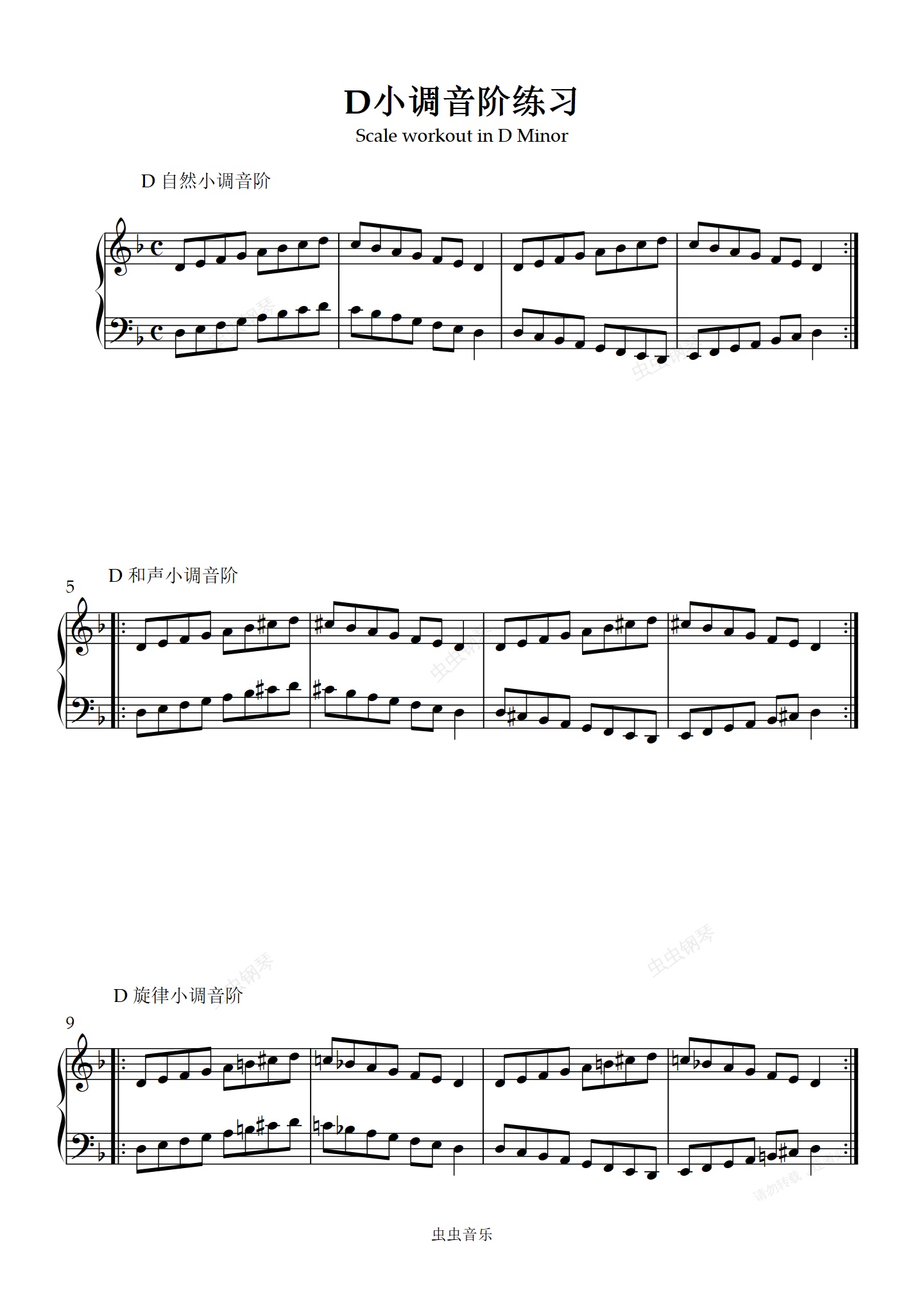 钢琴谱:D小调音阶练习