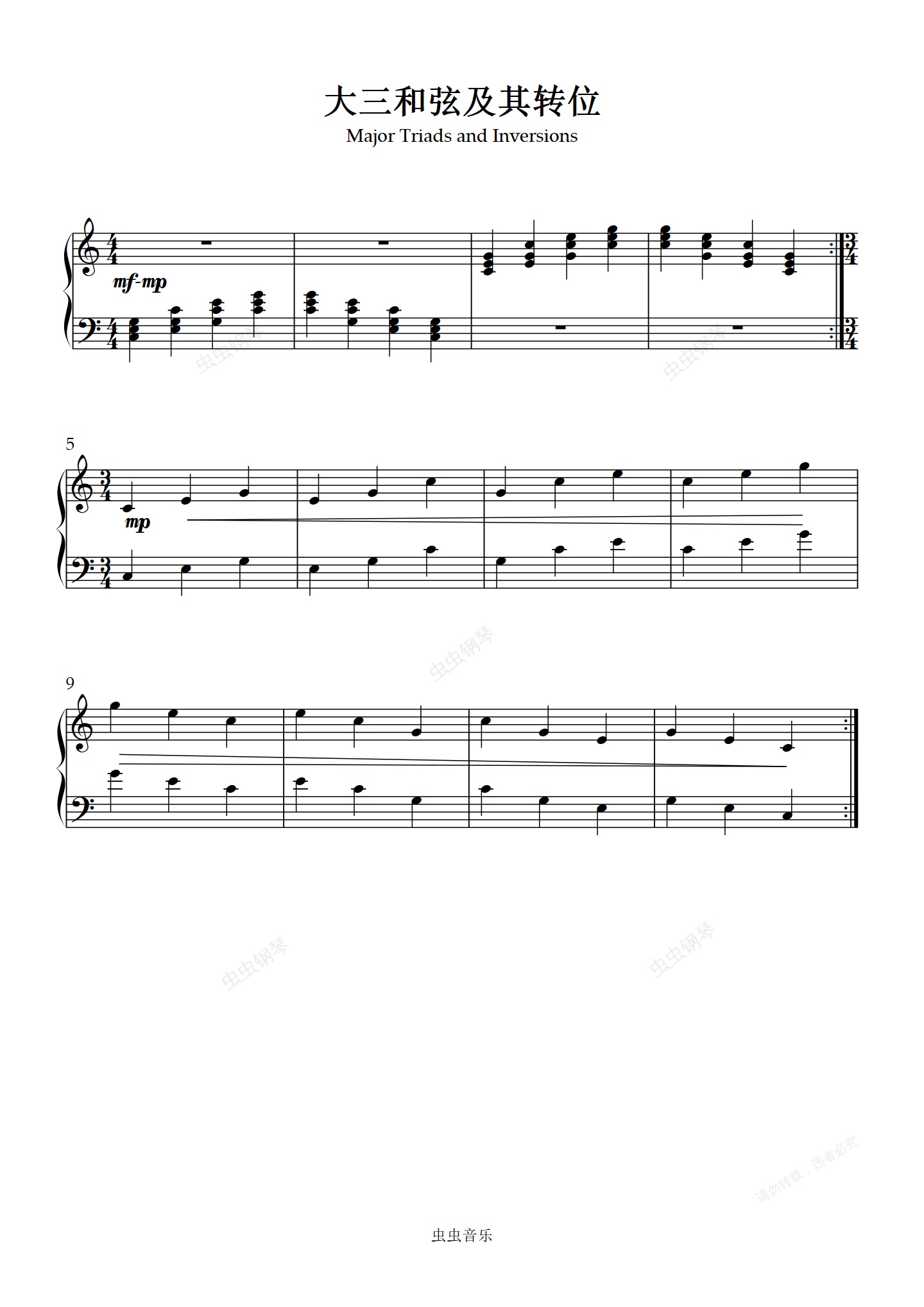 钢琴谱:大三和弦及其转位