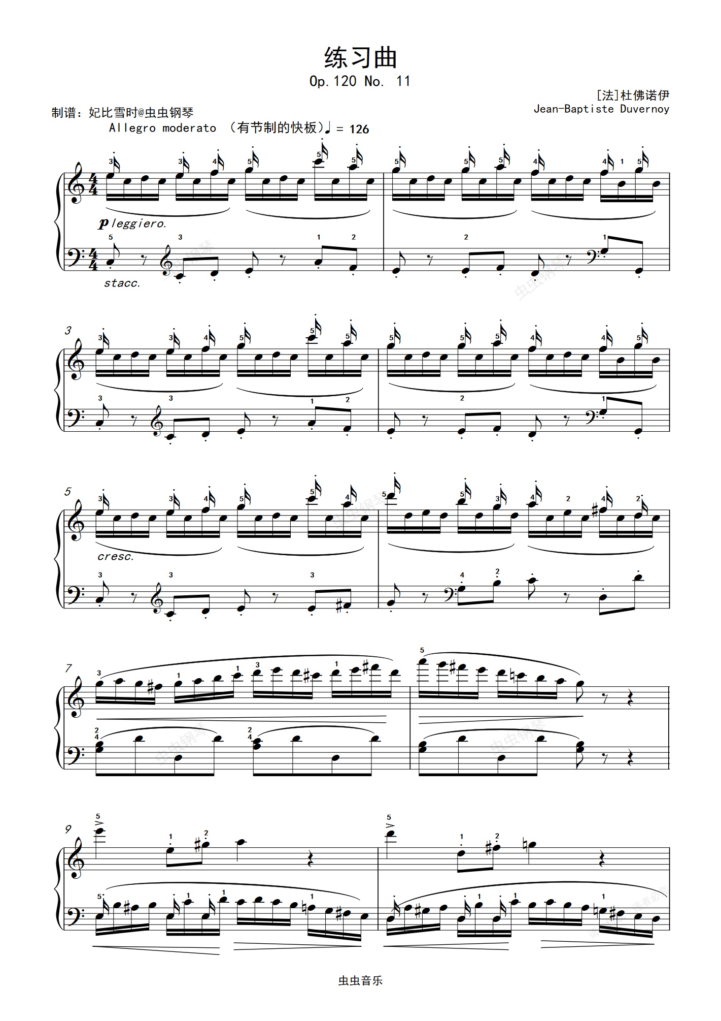 钢琴谱:练习曲(Op.120 No.11) - [法]杜佛诺伊 - 钢琴6级 - 2008年广东省钢琴演奏分级精选曲集(中册)但昭义主编