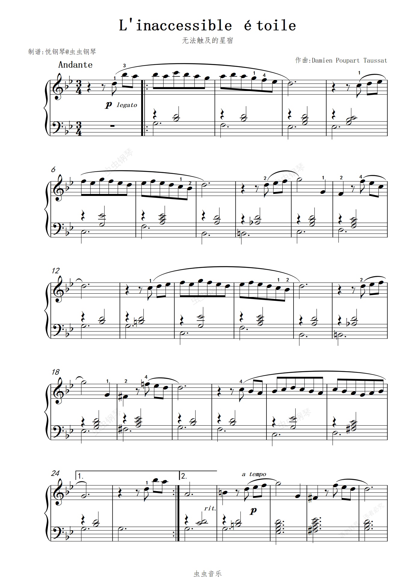 钢琴谱:无法触及的星宿//L'inaccessible étoile【治愈小曲】