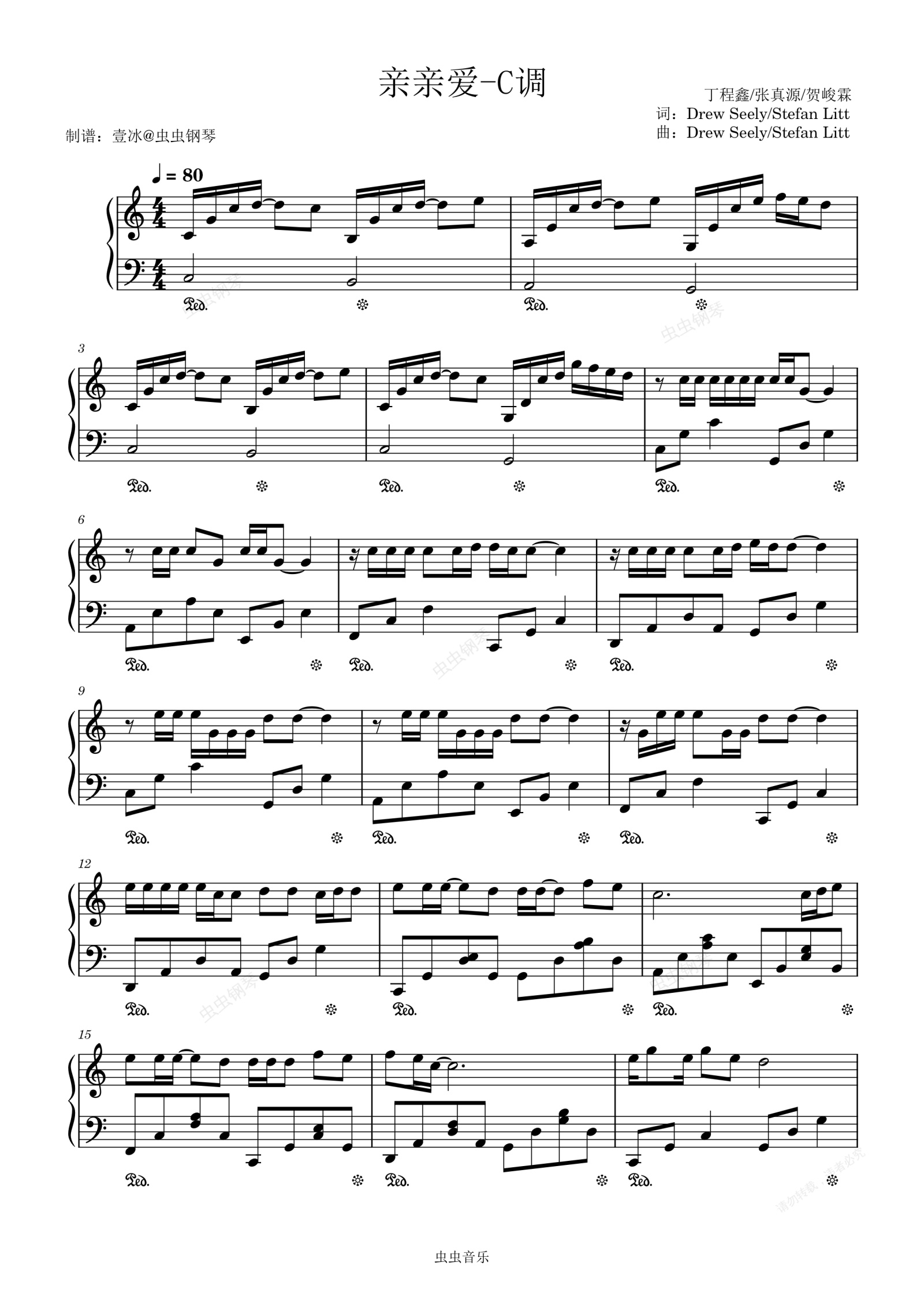 钢琴谱:亲亲爱//丁程鑫/张真源/贺峻霖-C调