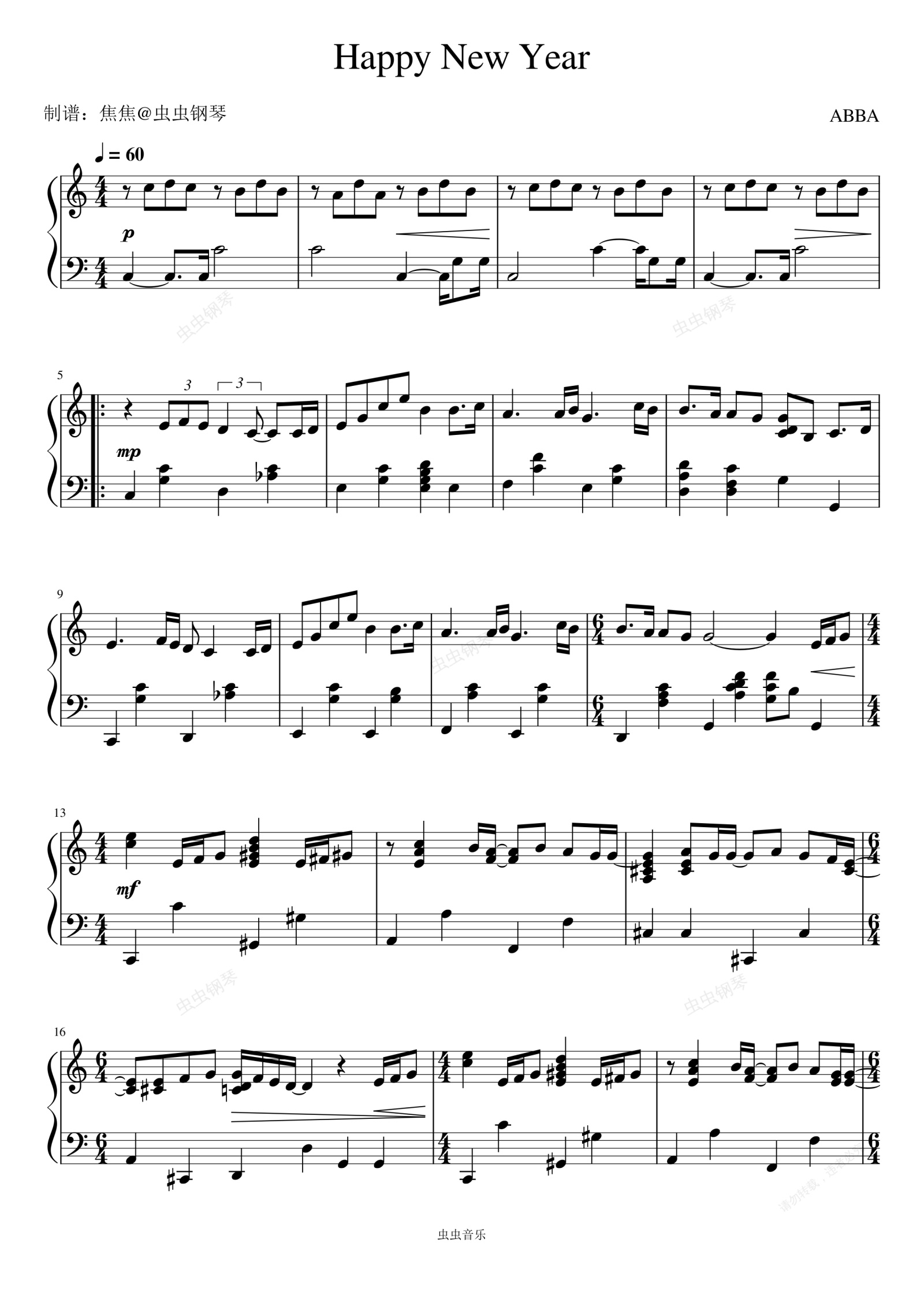 钢琴谱:Happy New Year - ABBA