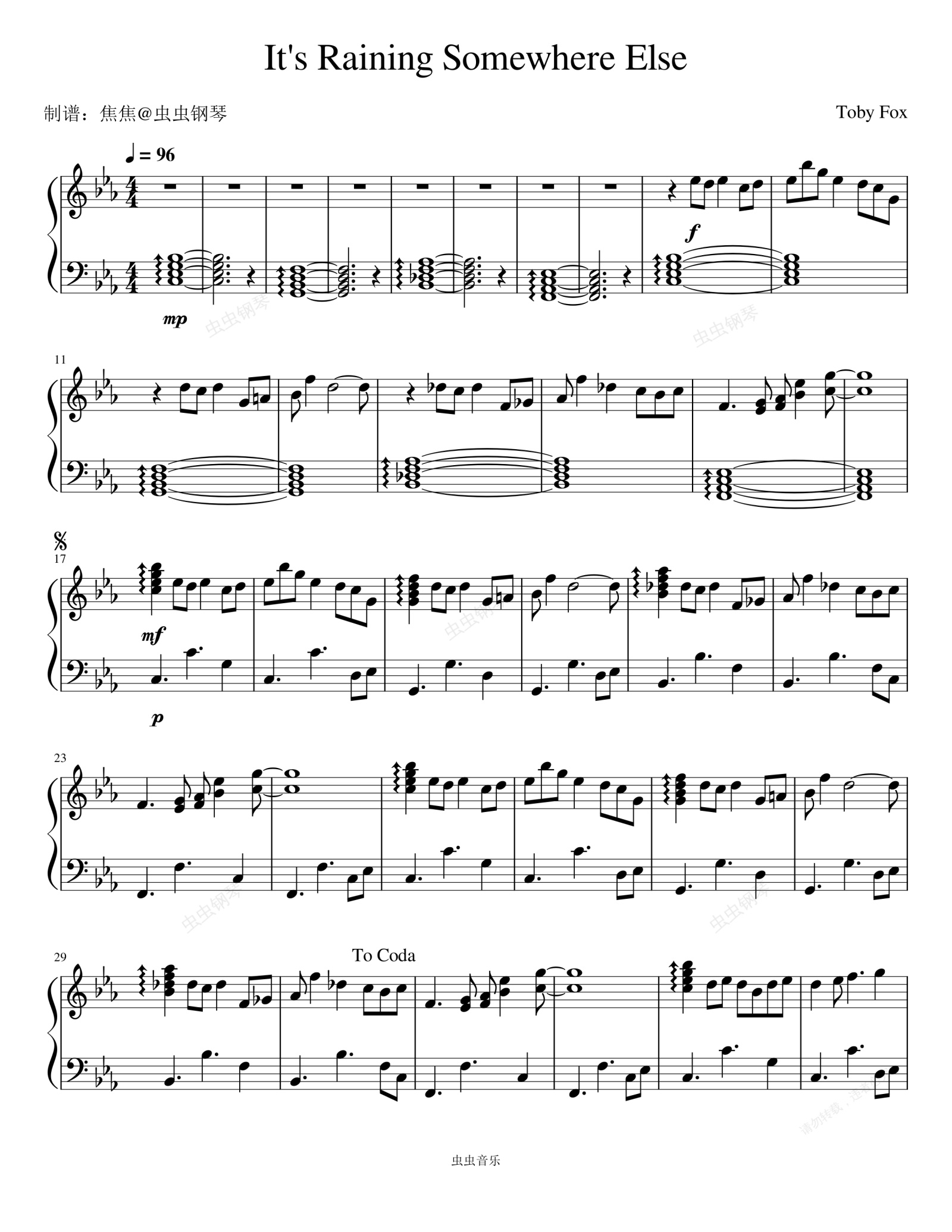 钢琴谱:It's Raining Somewhere Else - Toby Fox