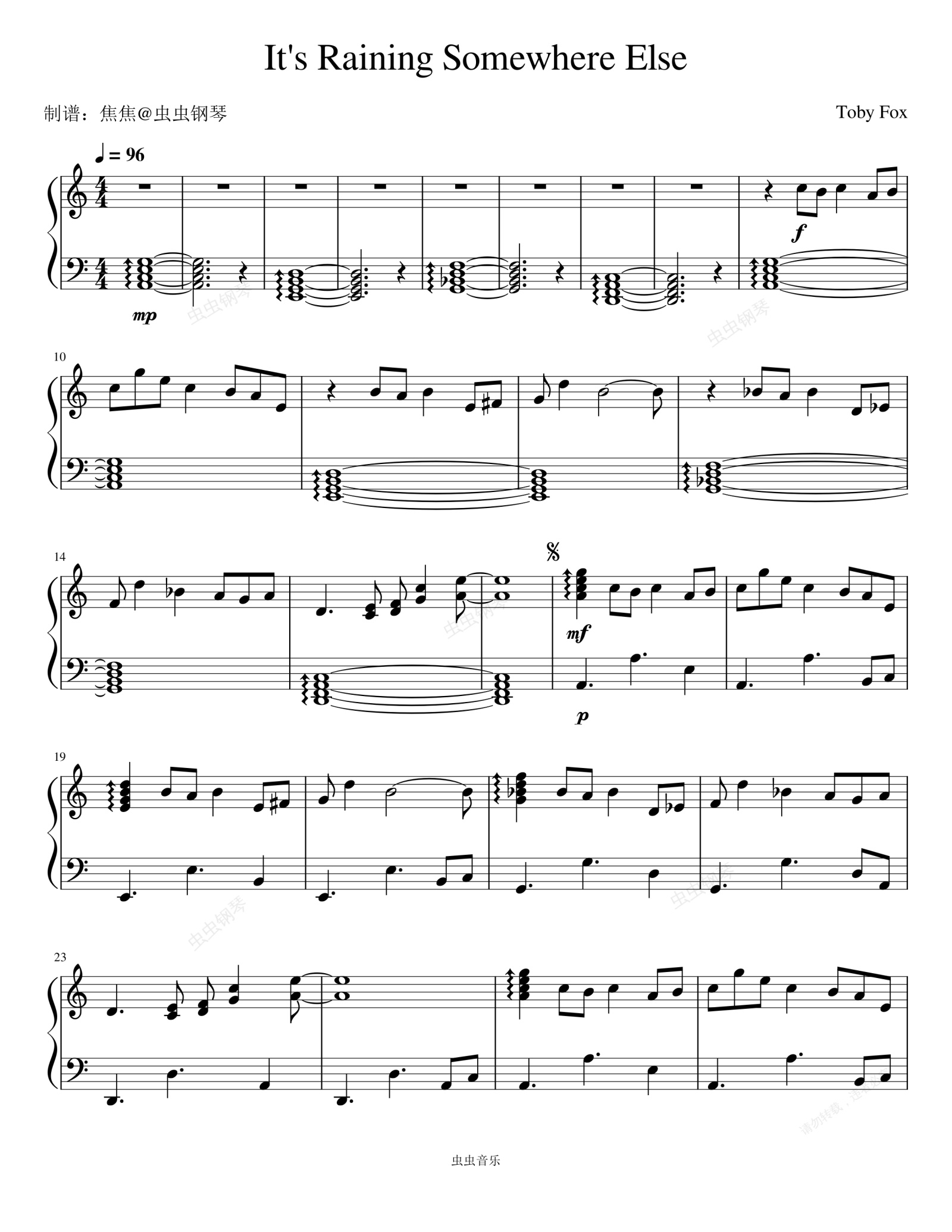 钢琴谱:It's Raining Somewhere Else - Toby Fox