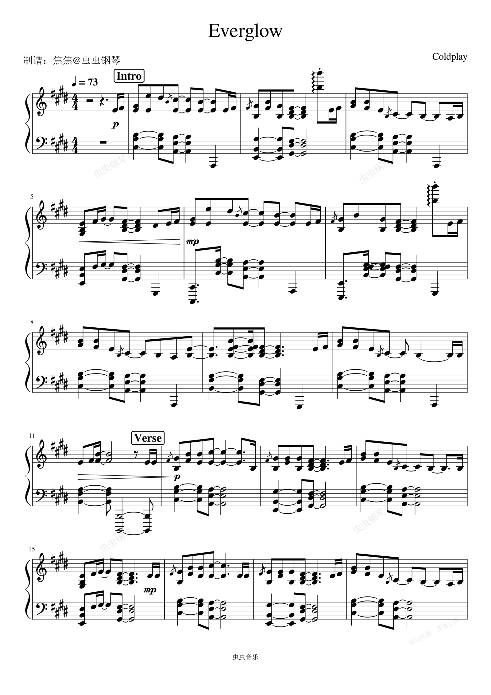 钢琴谱:Everglow - Coldplay (酷玩乐队)
