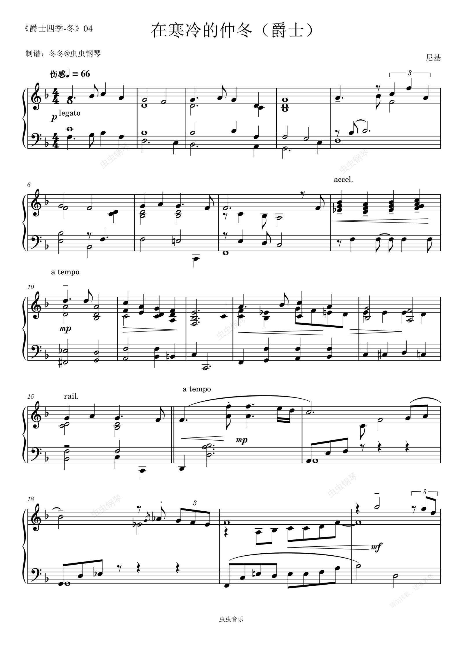 钢琴谱:在寒冷的仲冬(爵士)