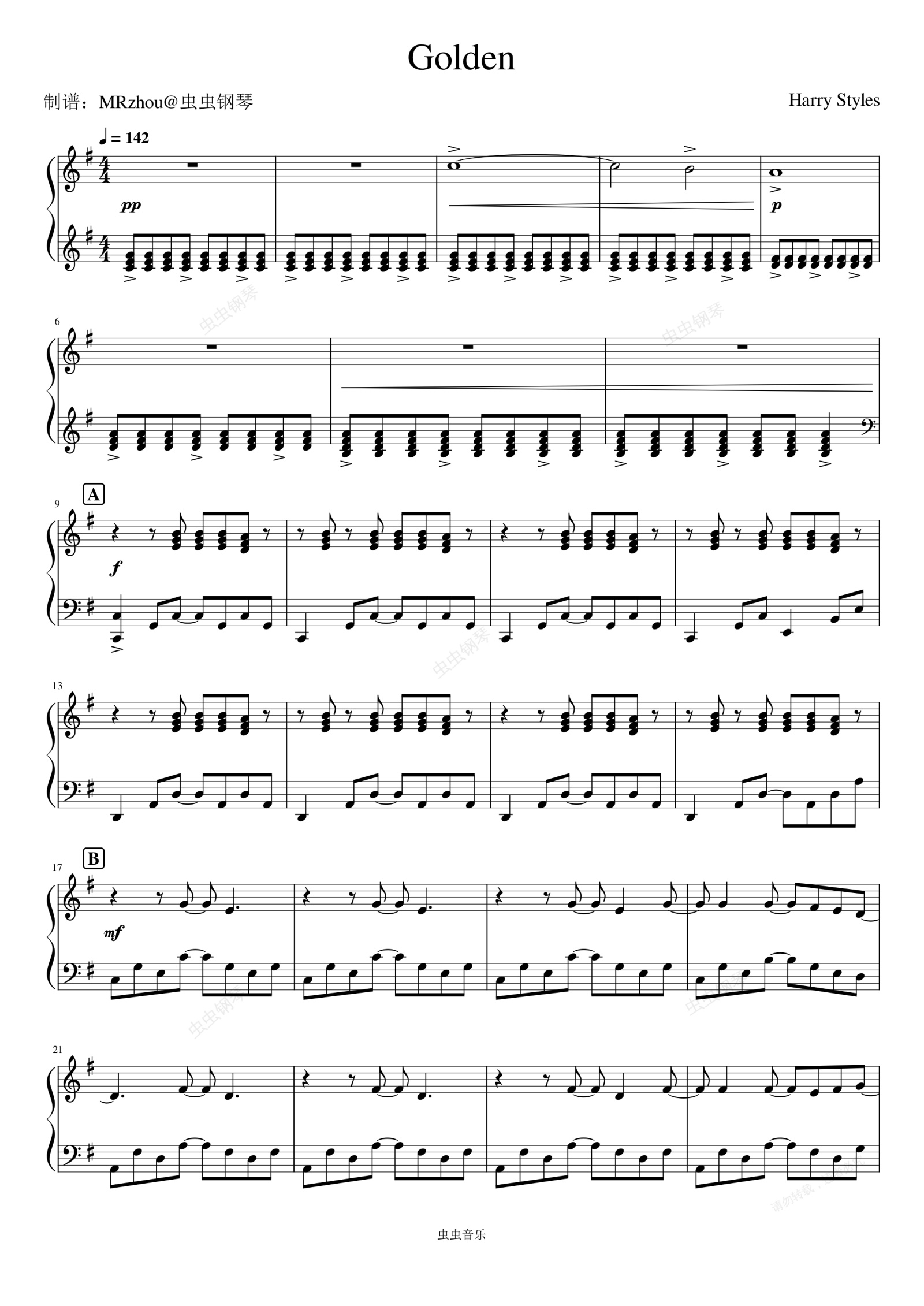 钢琴谱:Golden - Harry Styles (哈里·斯泰尔斯)