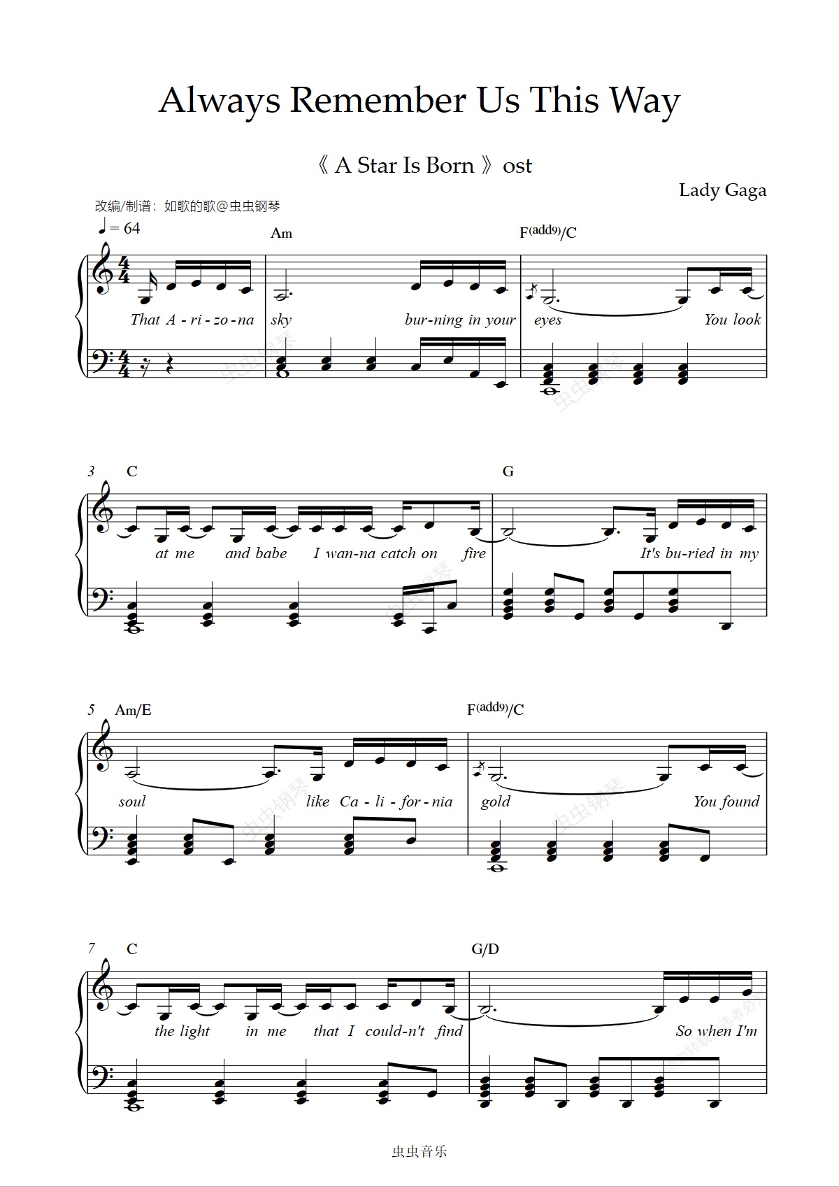 钢琴谱:Always Remember Us This Way-A Star Is Born ost可弹唱