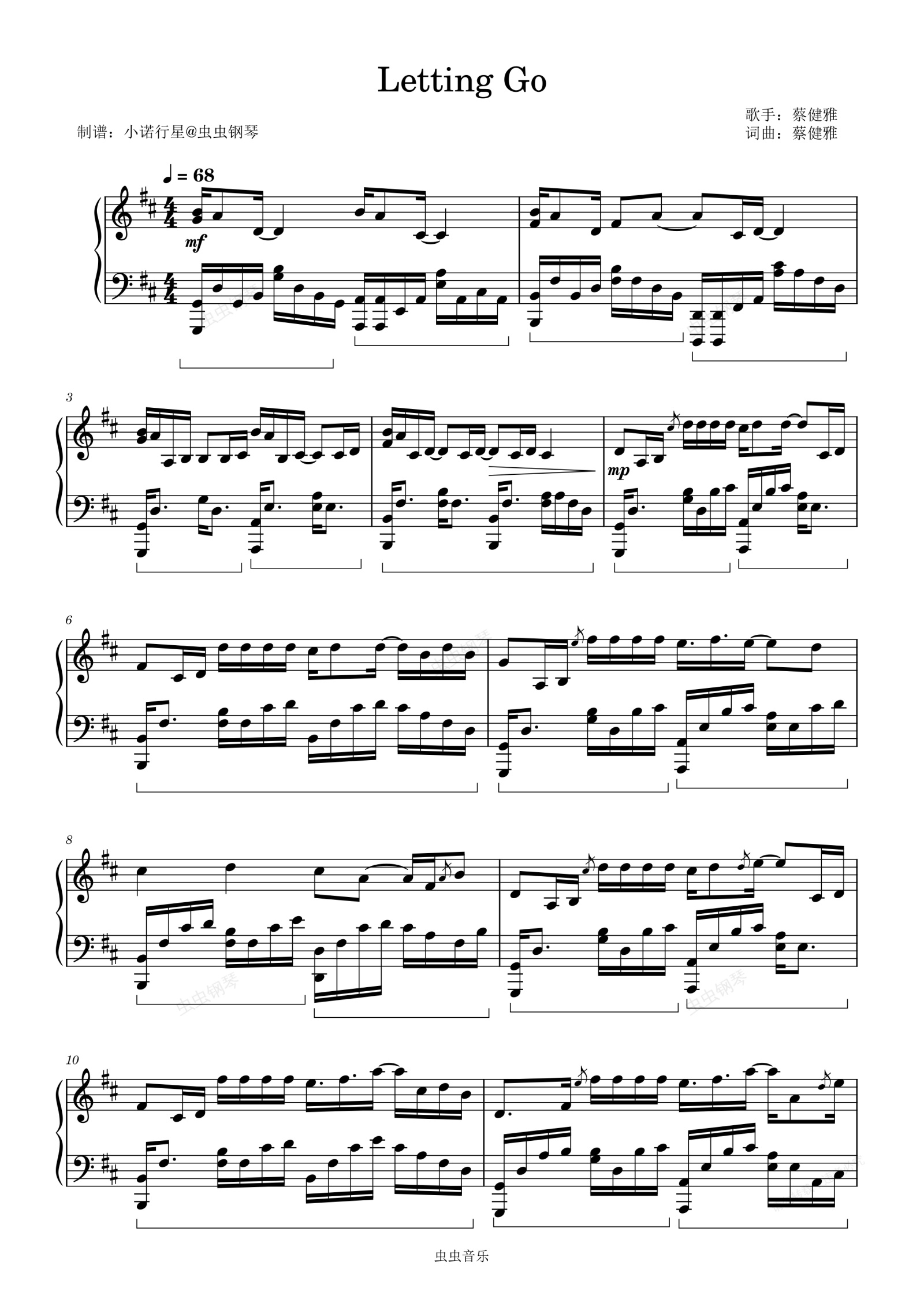 钢琴谱:Letting Go-高度还原 钢琴独奏