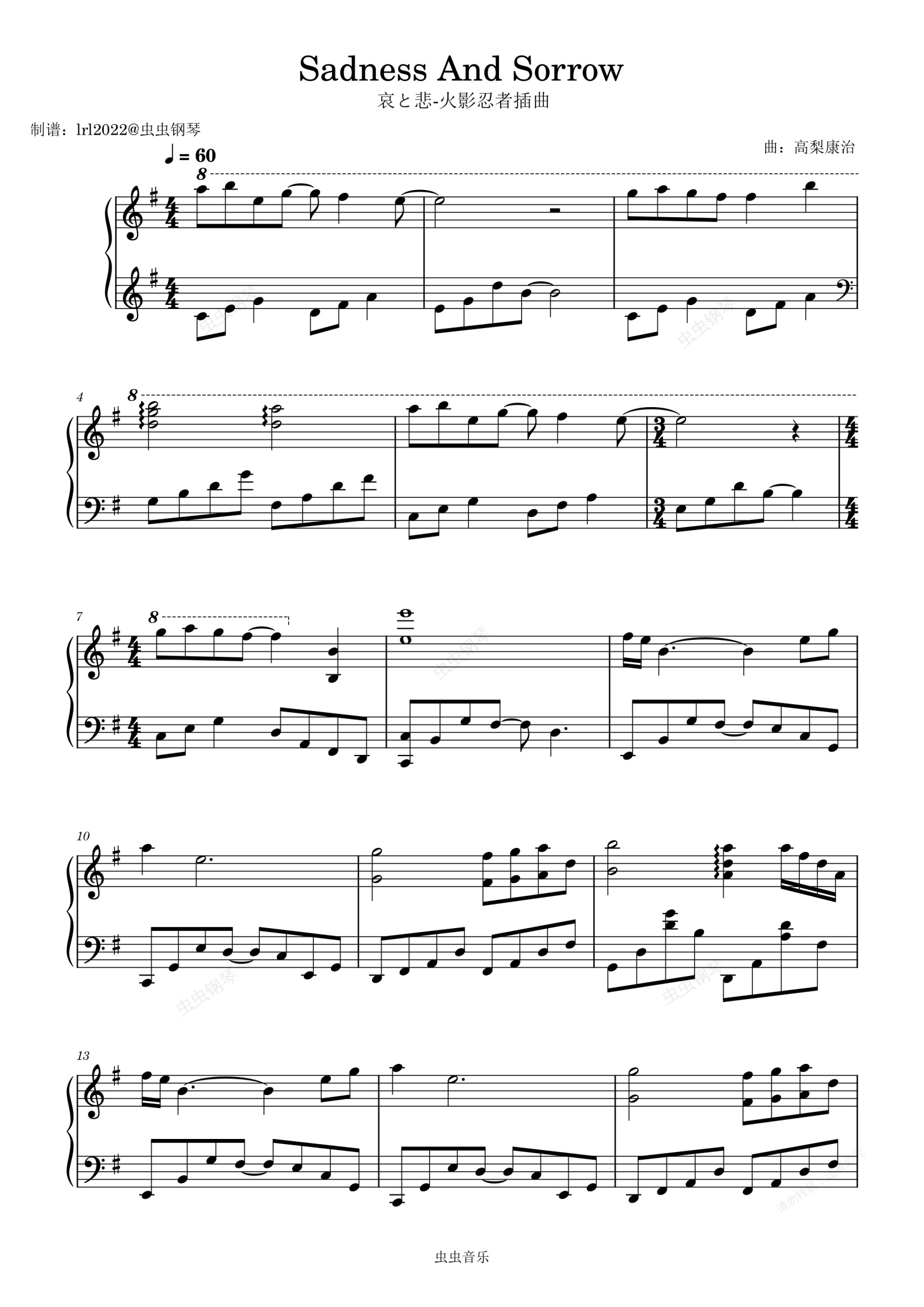 钢琴谱:Sadness And Sorrow-火影忍者插曲-哀伤-哀と悲