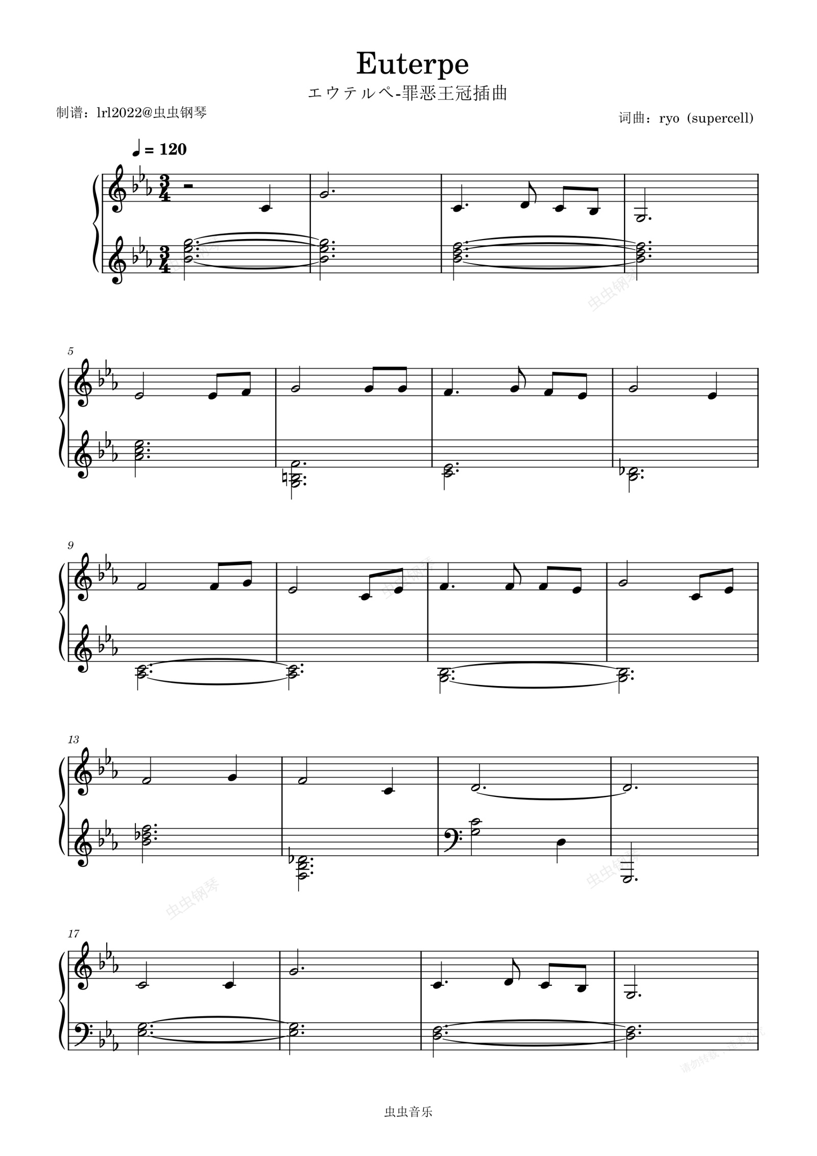 钢琴谱:Euterpe-エウテルペ-罪恶王冠插曲-supercell-欧忒耳佩