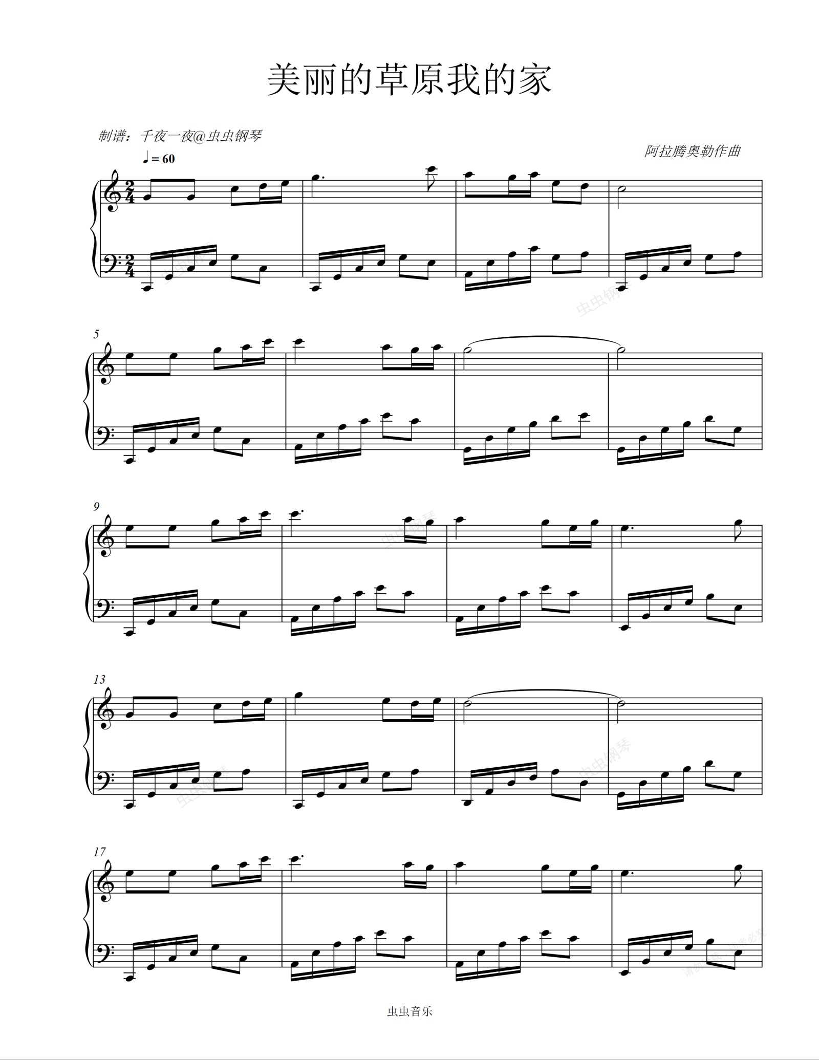 钢琴谱:美丽的草原我的家 - 钢琴曲 德德玛演唱版
