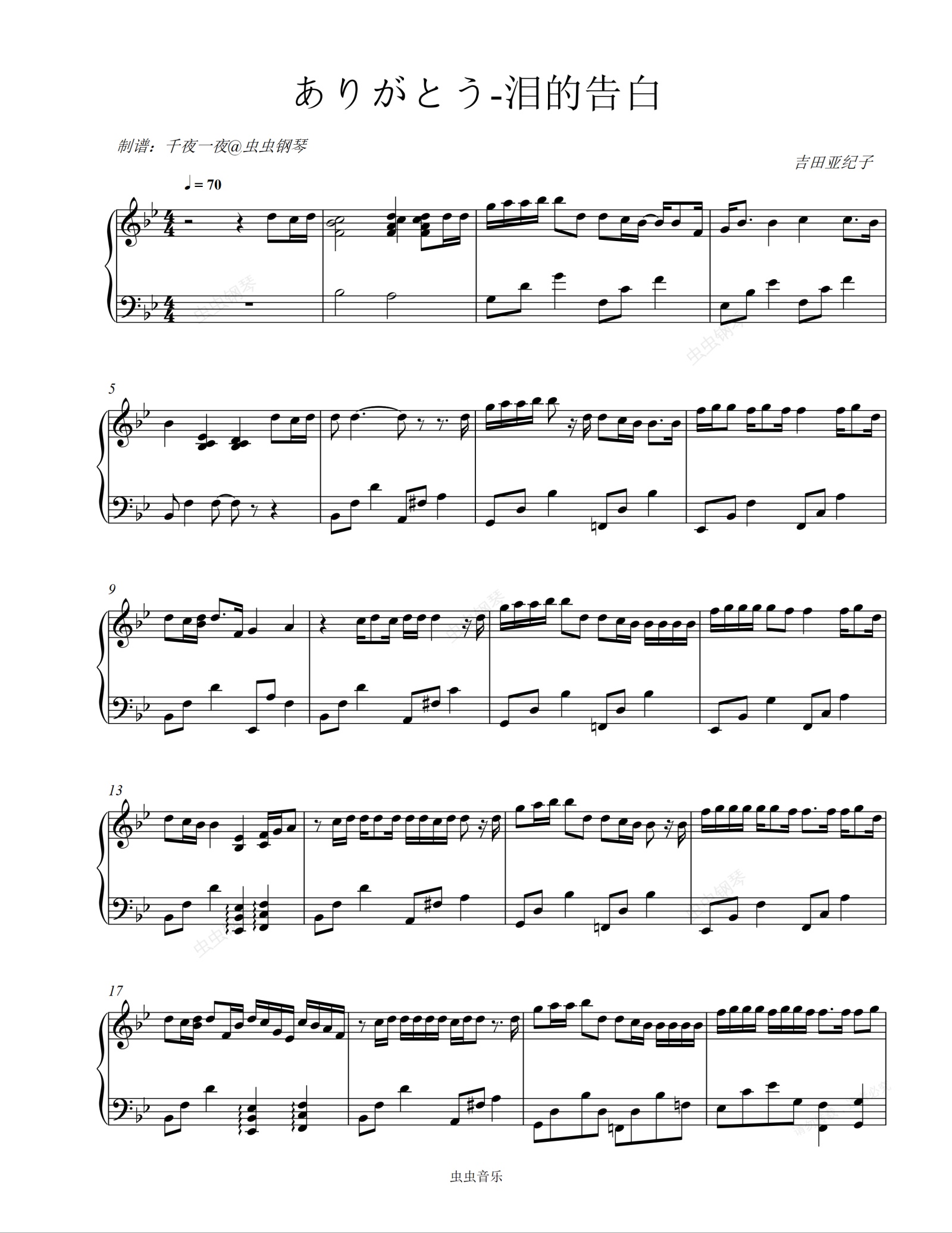 钢琴谱:【钢琴】泪的告白 ありがとう