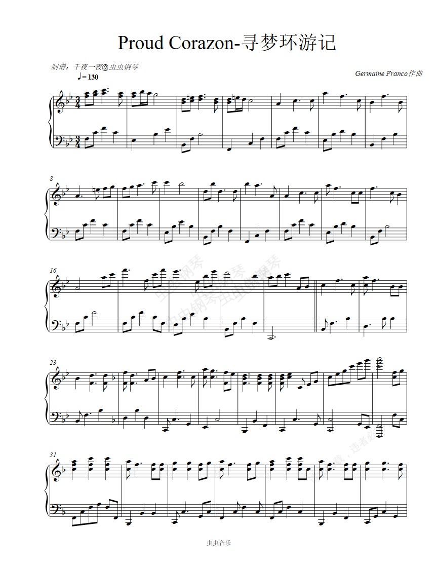 钢琴谱:【钢琴】Proud Corazón(寻梦环游记)