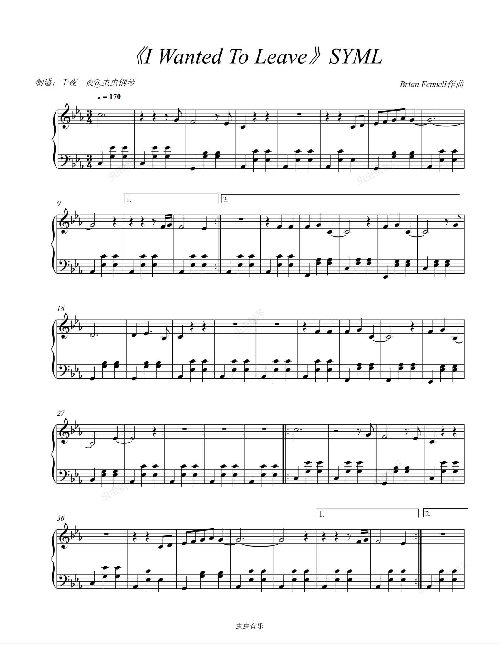 钢琴谱:美国音乐人SYML - I Wanted to Leave