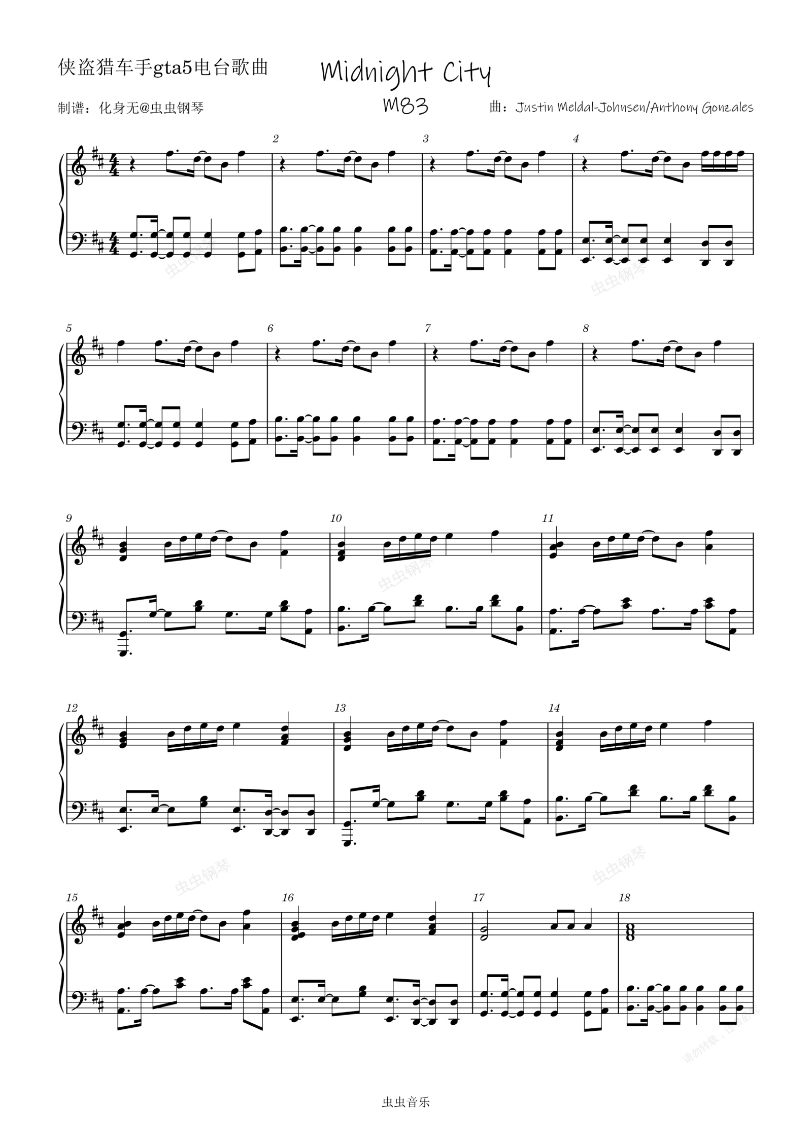 钢琴谱:Midnight City 侠盗猎车手gta5电台歌曲 R星出品,必属精品
